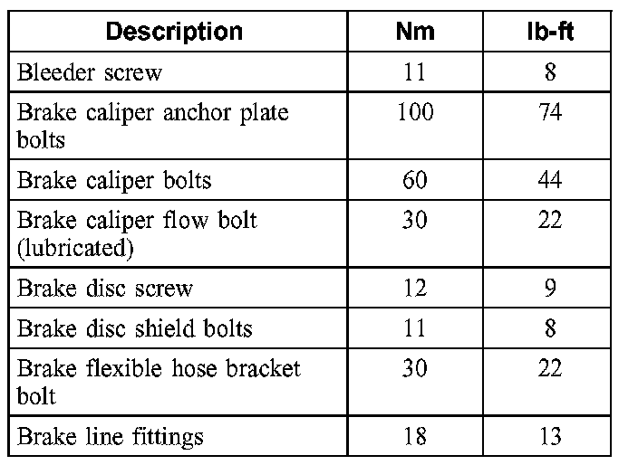 Torque Specifications:
