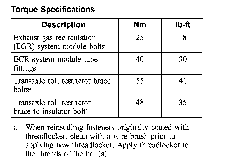 Torque Specifications: