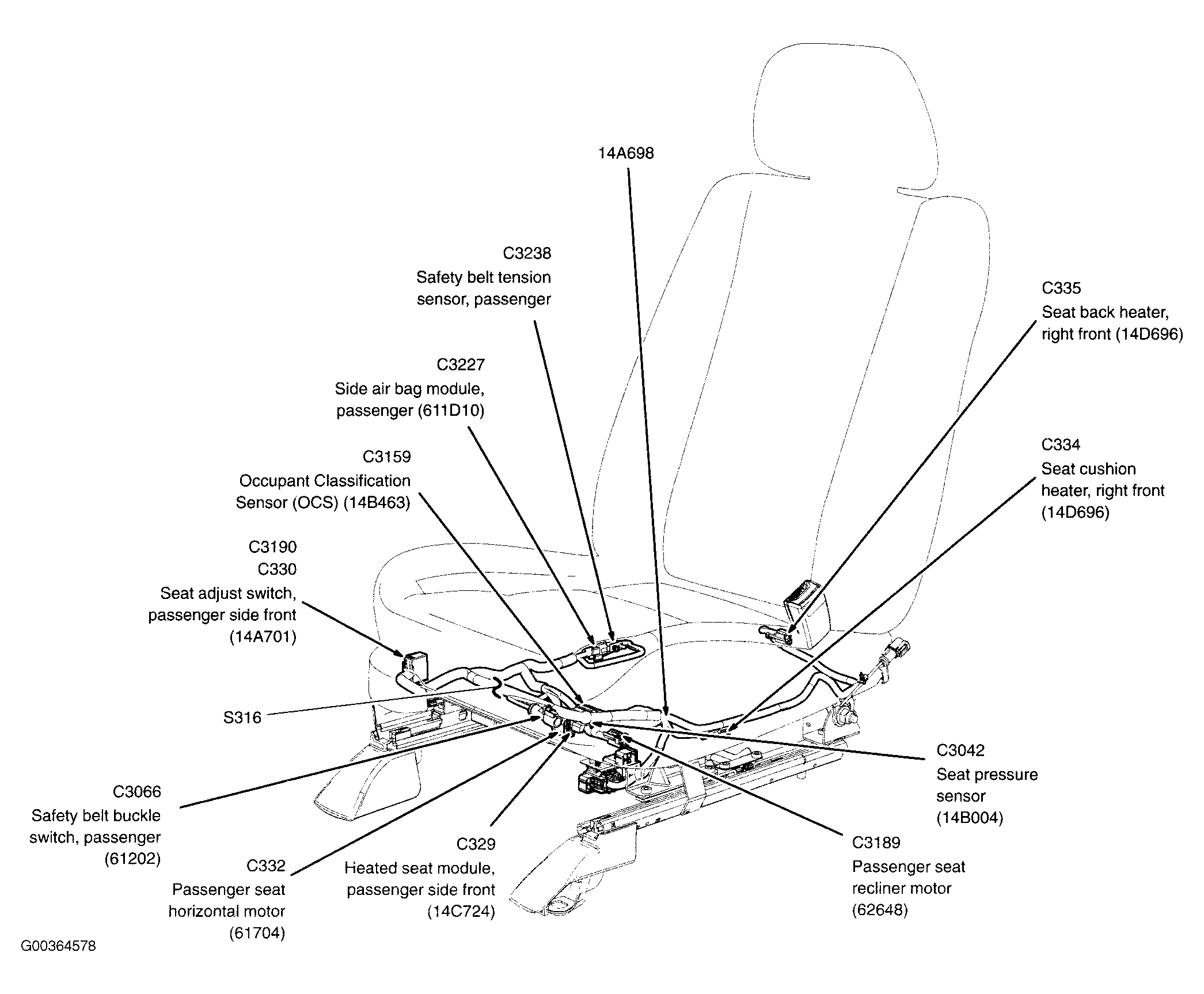 Heated Seat Module, Passenger Side Front In bottom of front passenger's seat. See Figure.