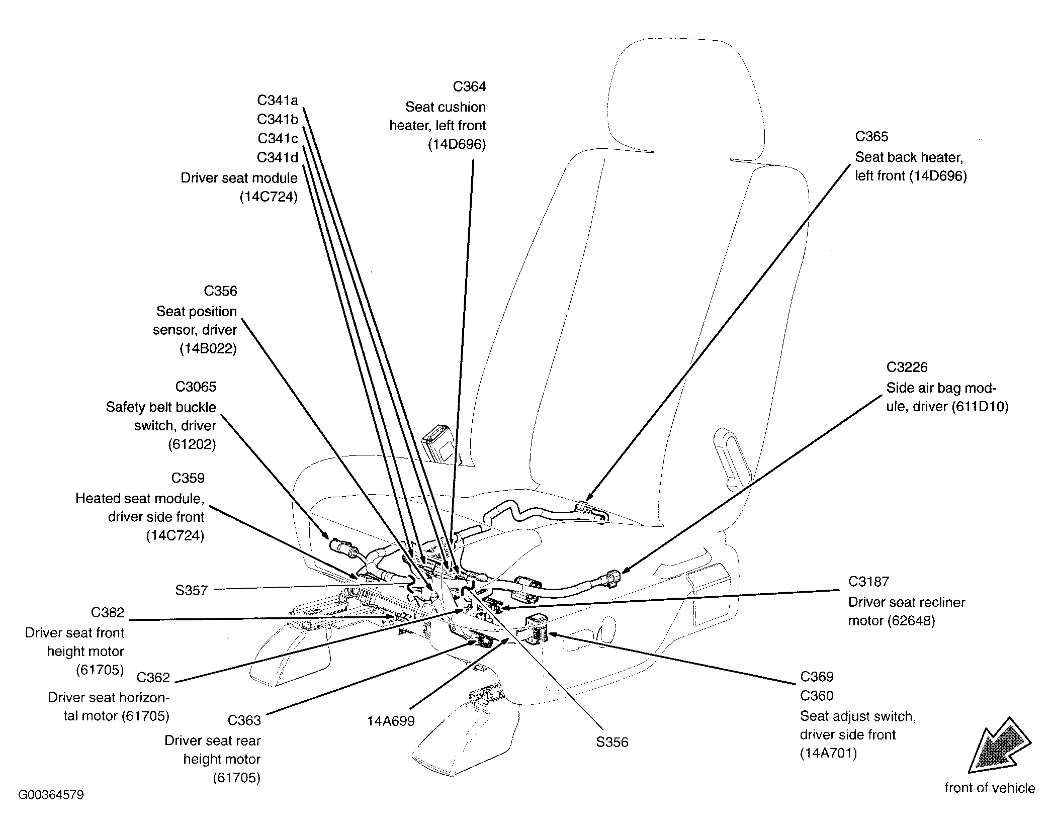 Heated Seat Module, Driver Side Front In driver seat bottom. See Figure.