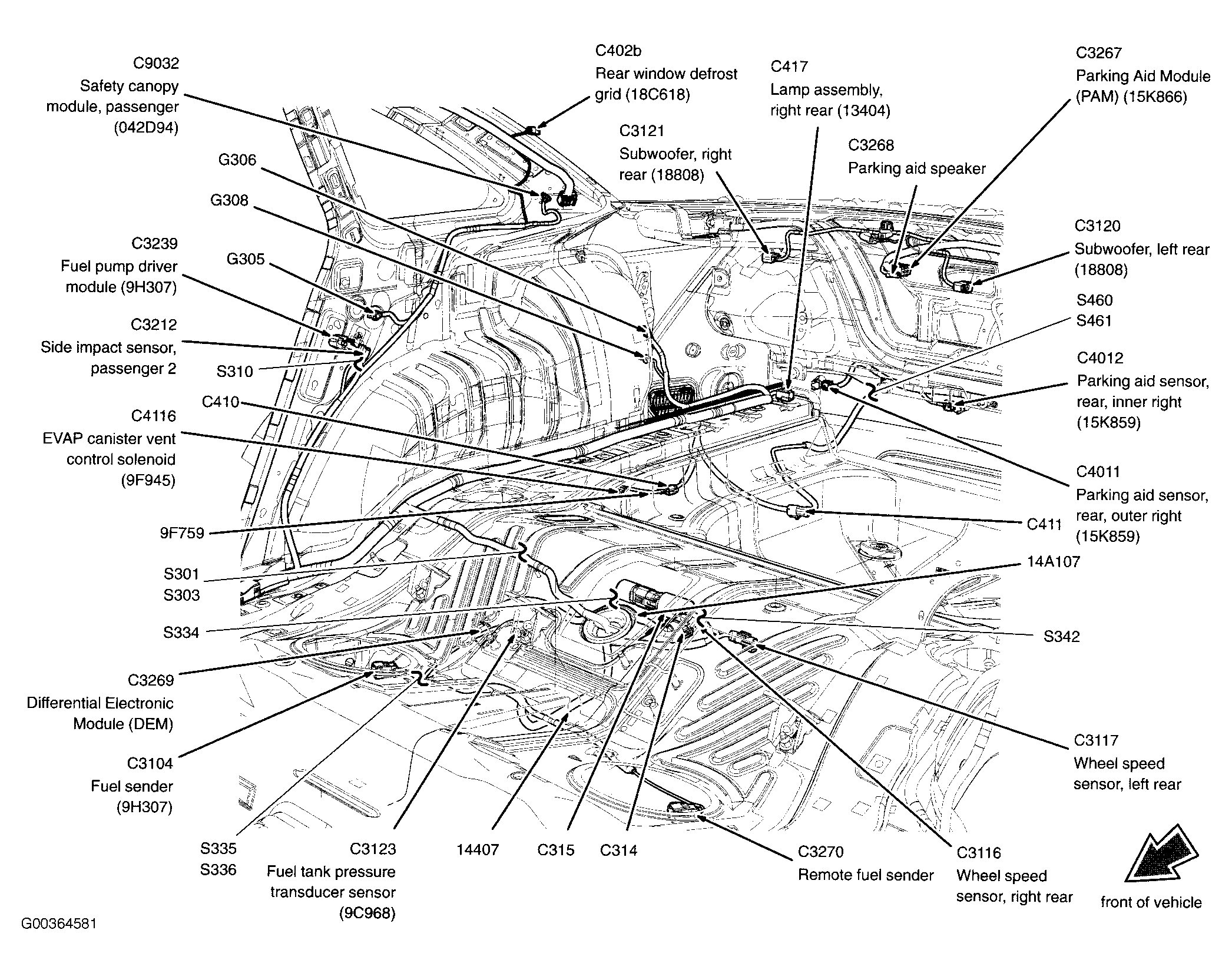 Fuel Pump Driver Module (Freestyle) Right "C" pillar. See Figure.