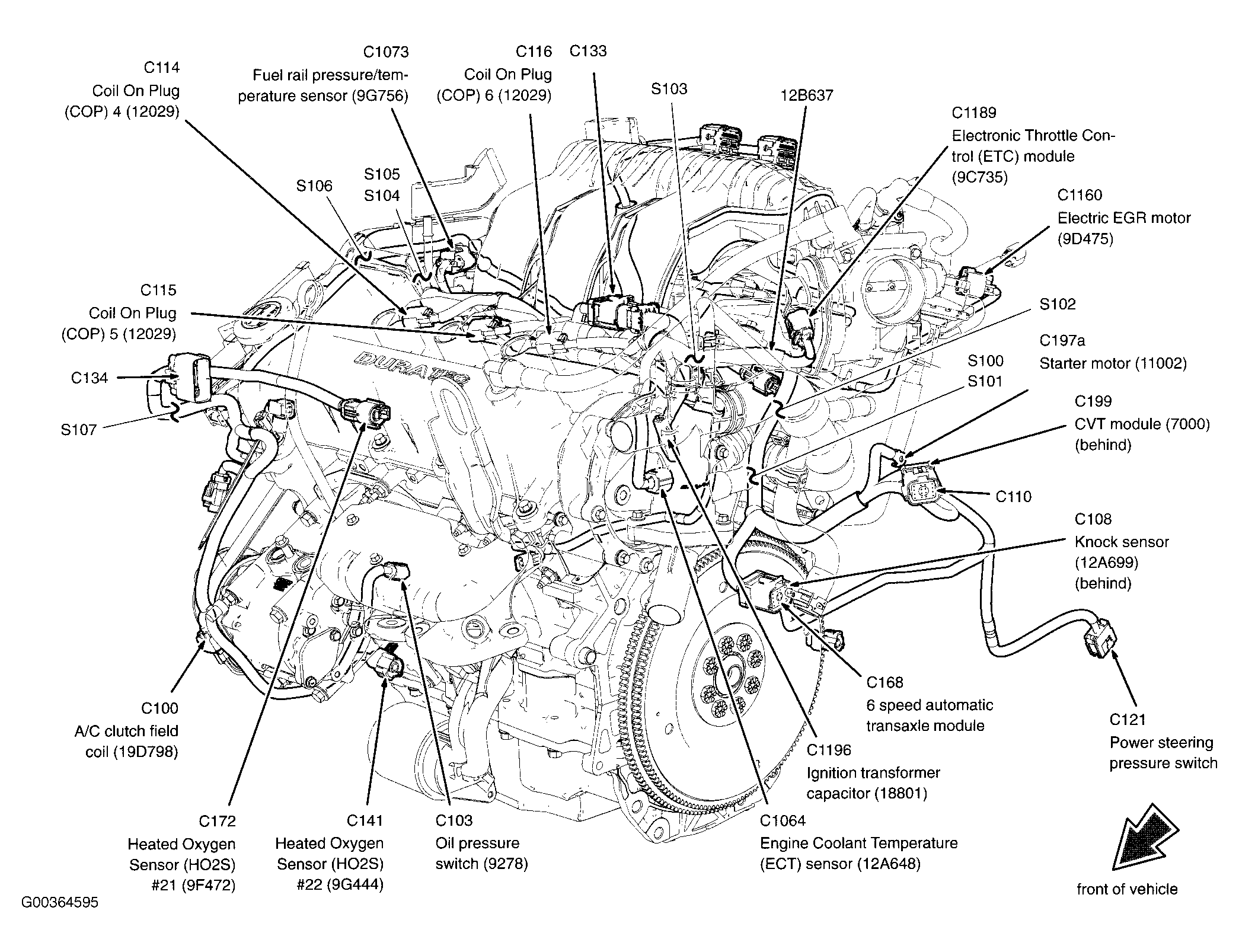 Powertrain Control Module (PCM) Right rear of engine compartment. See Figure.