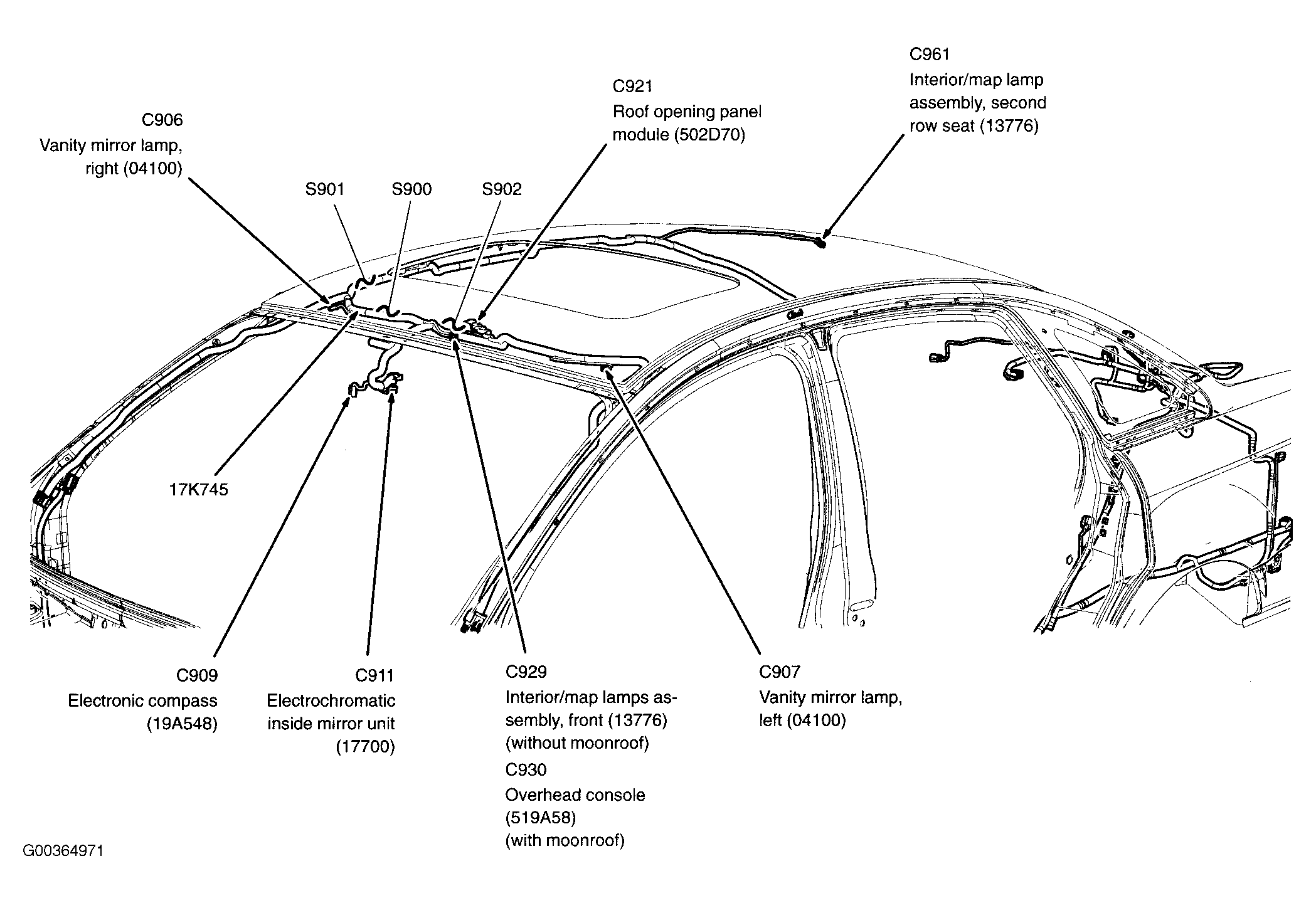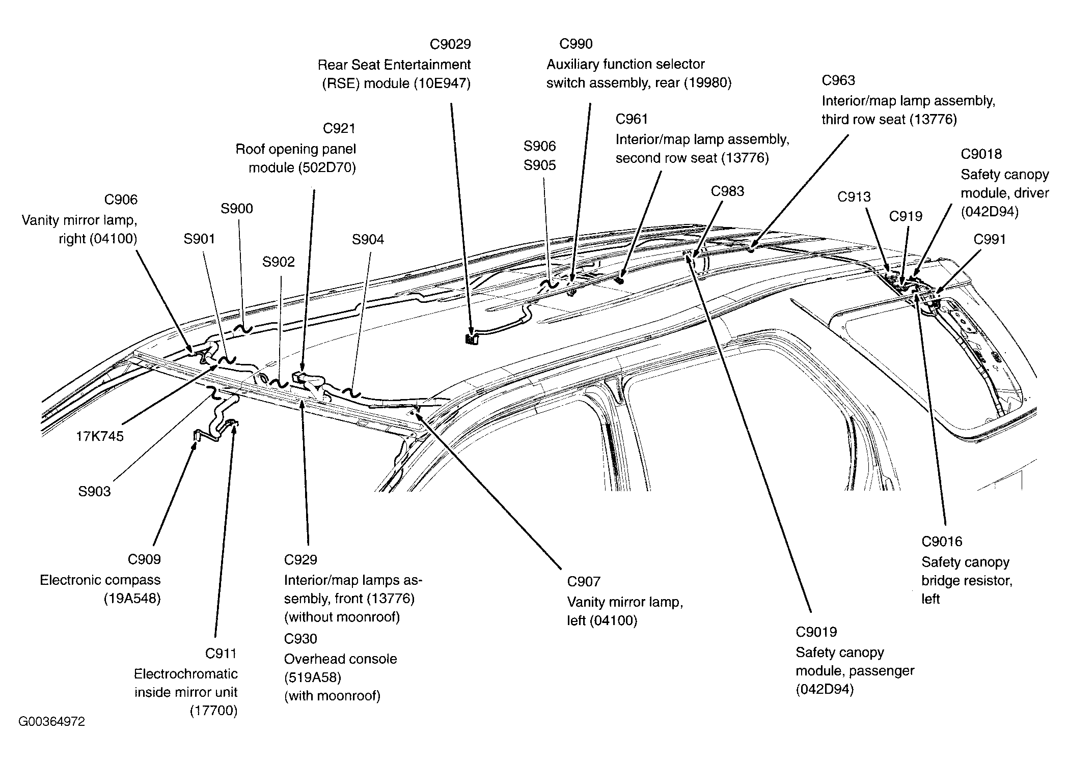 Roof Opening Panel Module (Freestyle) Behind headliner, above rear view mirror. See Figure.