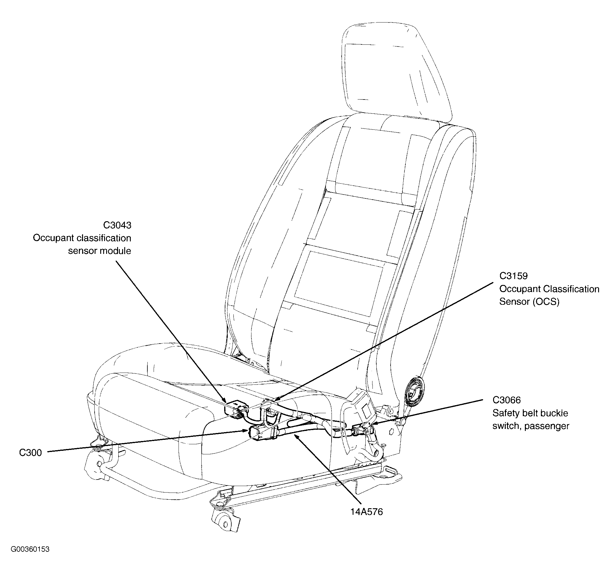 Occupant Classification Sensor Module Under passenger's seat. See Figure .