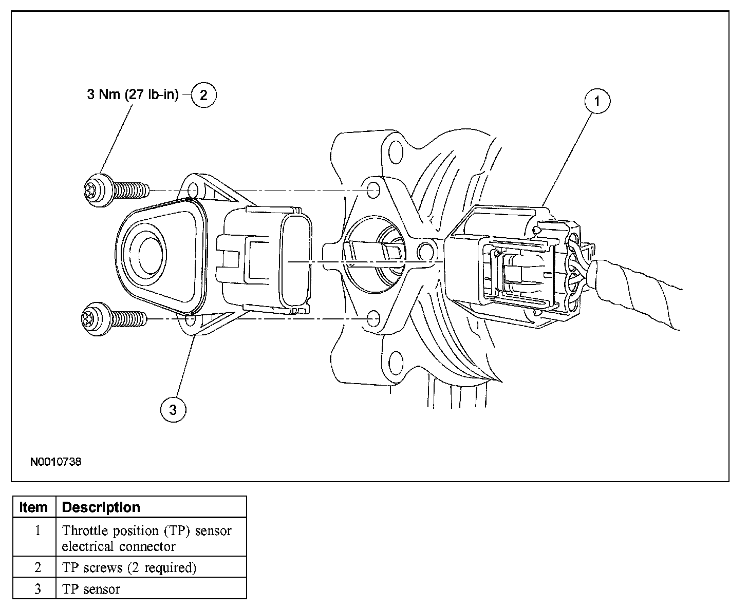 NOTE: When installing the new TP sensor, make sure that the radial locator tab on the TP sensor is aligned with the radial locator hole on the throttle body.