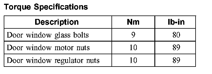 Torque Specifications: