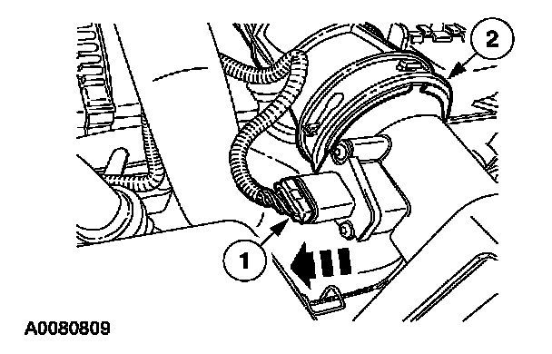 2. Disconnect the mass air flow (MAF) sensor electrical connector and the air cleaner outlet pipe.