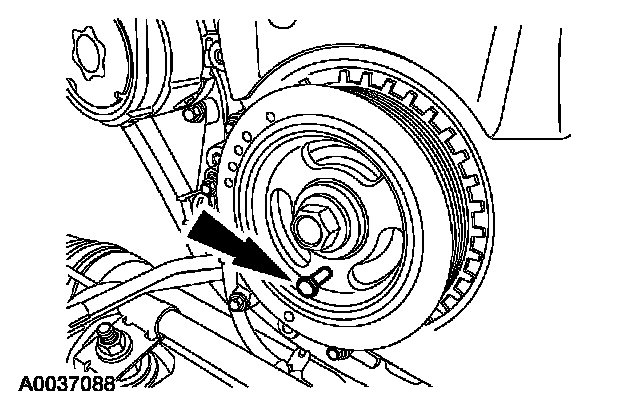 5. Install the special tool and turn the crankshaft pulley bolt to position the number one cylinder at top dead center.
