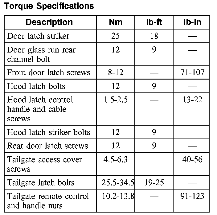 Torque Specifications: