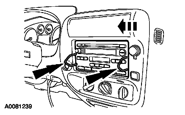 2. Disconnect the audio unit electrical connector and antenna cable.