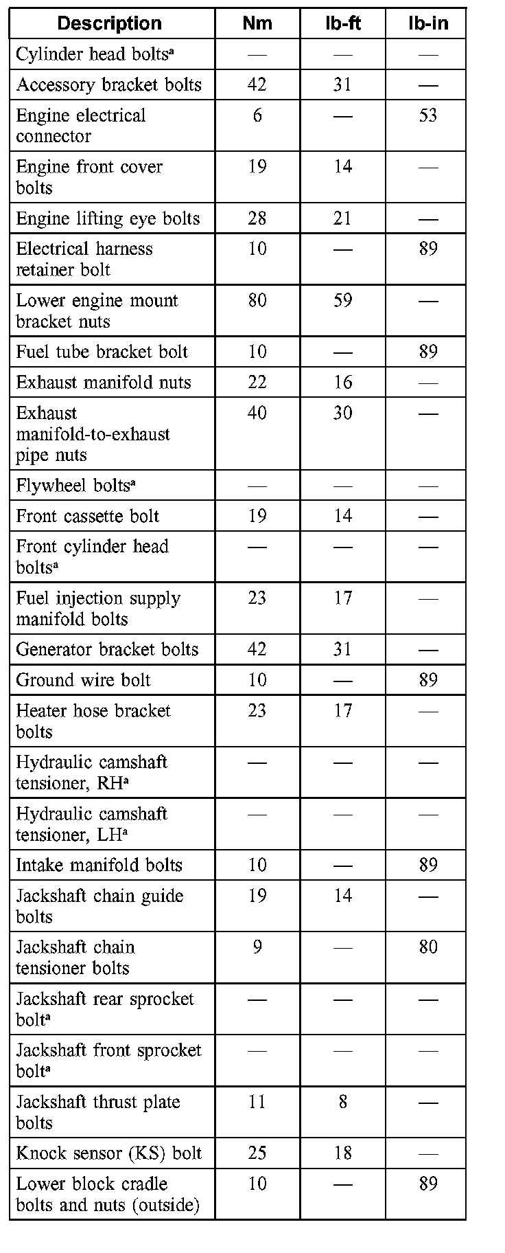 Torque Specifications