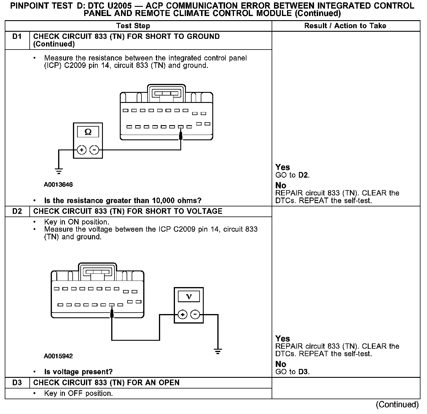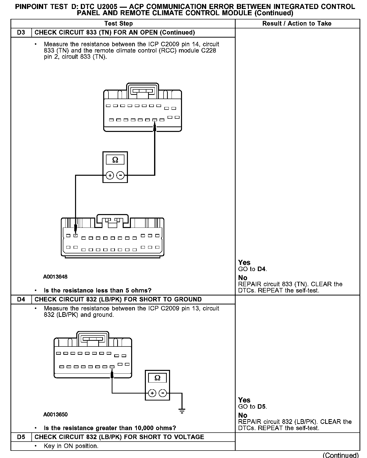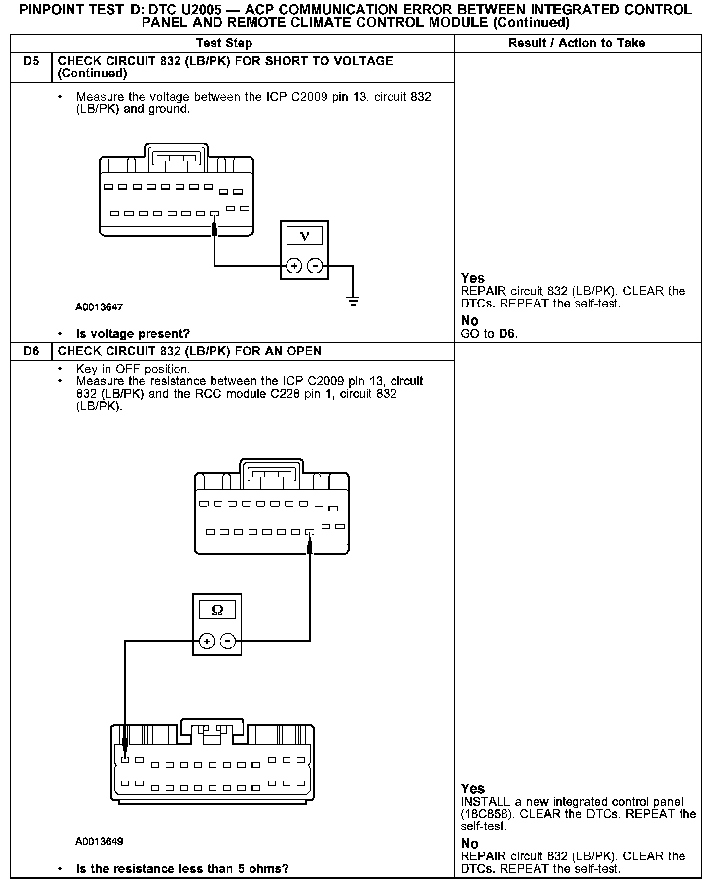 PINPOINT TEST D: DTC U2005 - ACP COMMUNICATION ERROR BETWEEN INTEGRATED CONTROL PANEL AND REMOTE CLIMATE CONTROL MODULETest D3-D5: