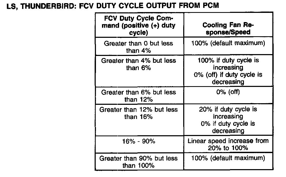 LS, Thunderbird: FCV Duty Cycle Output From PCM: