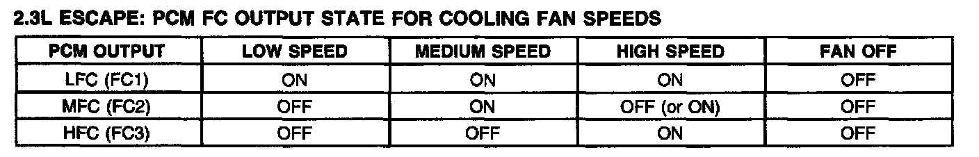 2.0L Escape: PCM FC Output State For Cooling Fan Speeds Chart: