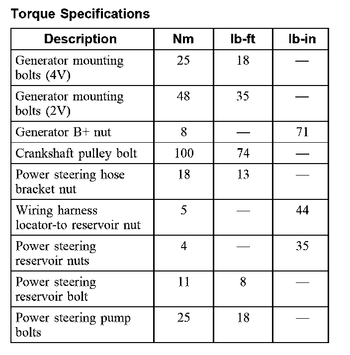 Torque Specifications: