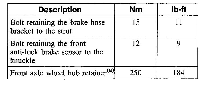 Home >> Ford >> 2005 >> Taurus V6-3.0L VIN U >> Repair and Diagnosis >> Specifications >> Mechanical Specifications >> Axle Shaft Assembly >> Torque Specifications