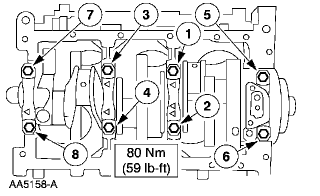 Main bearing cap bolts 80 Nm (59 ft.lbs.)