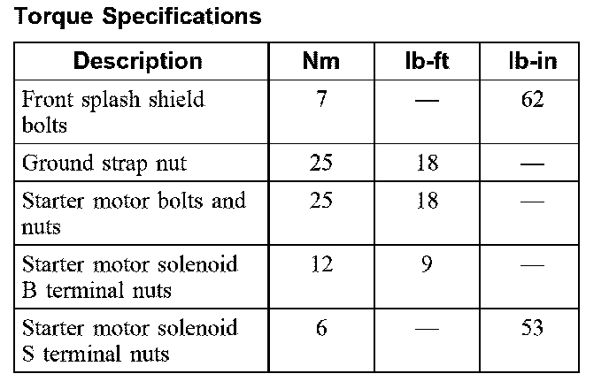 Torque Specifications: