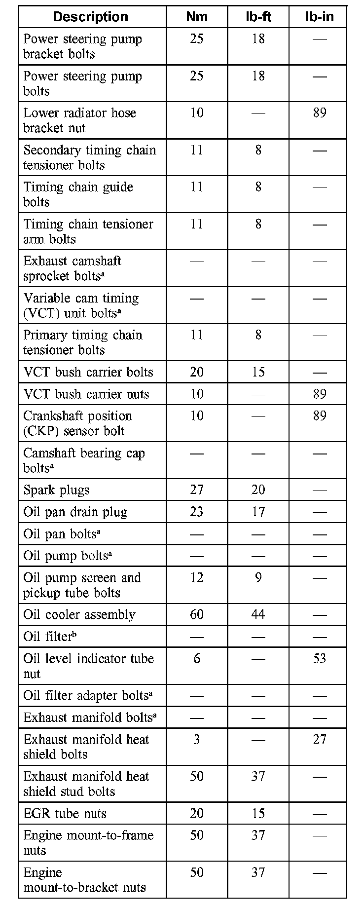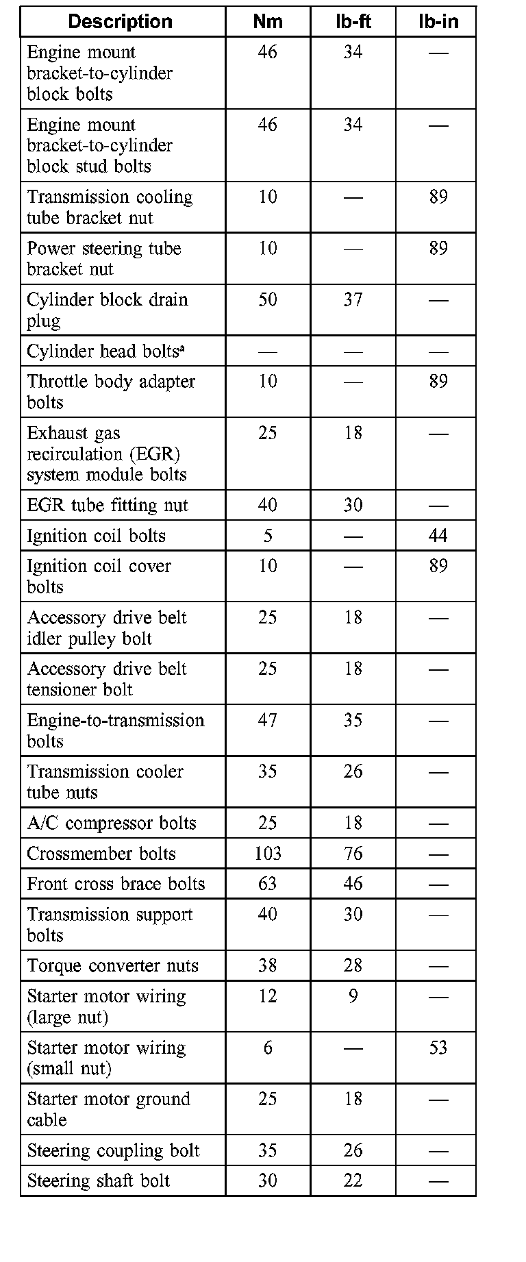 Torque Specifications