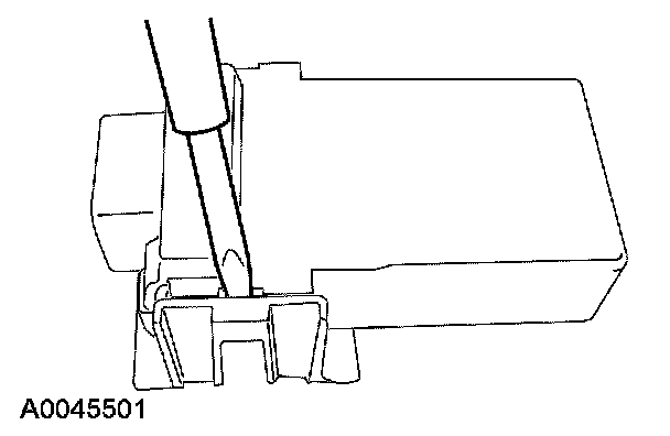 5. Insert a flat-bladed screwdriver into the heated seat module bracket and release the locking tab. Remove the heated seat module.