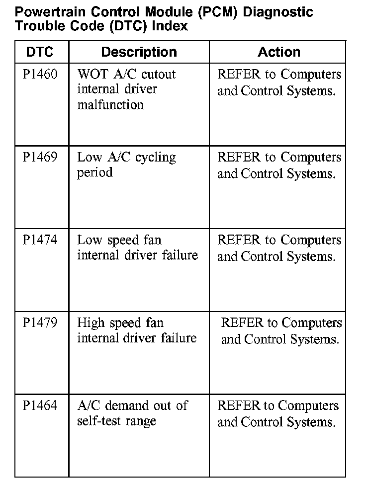 Powertrain Control Module (PCM) Diagnostic Trouble Code (DTC) Index