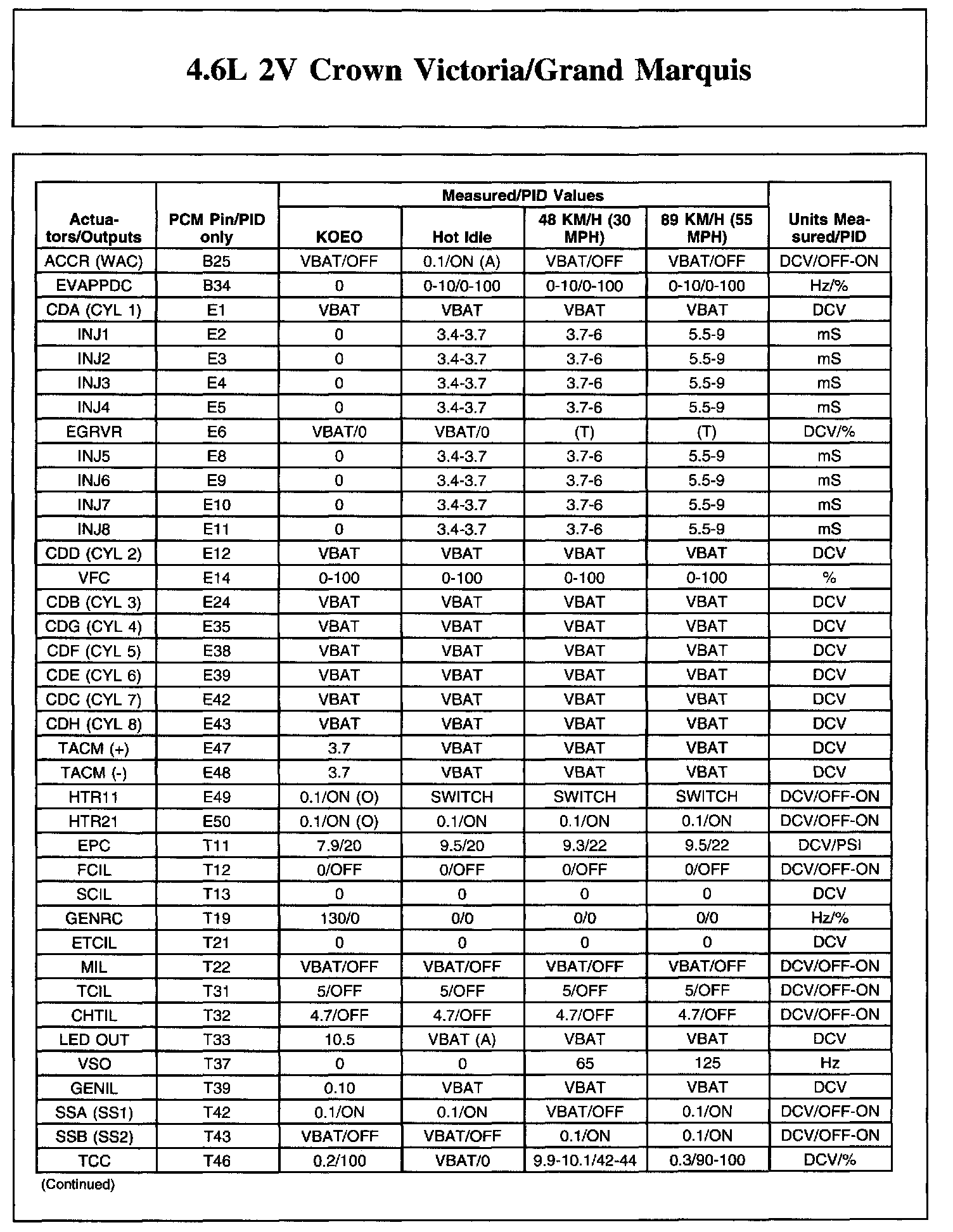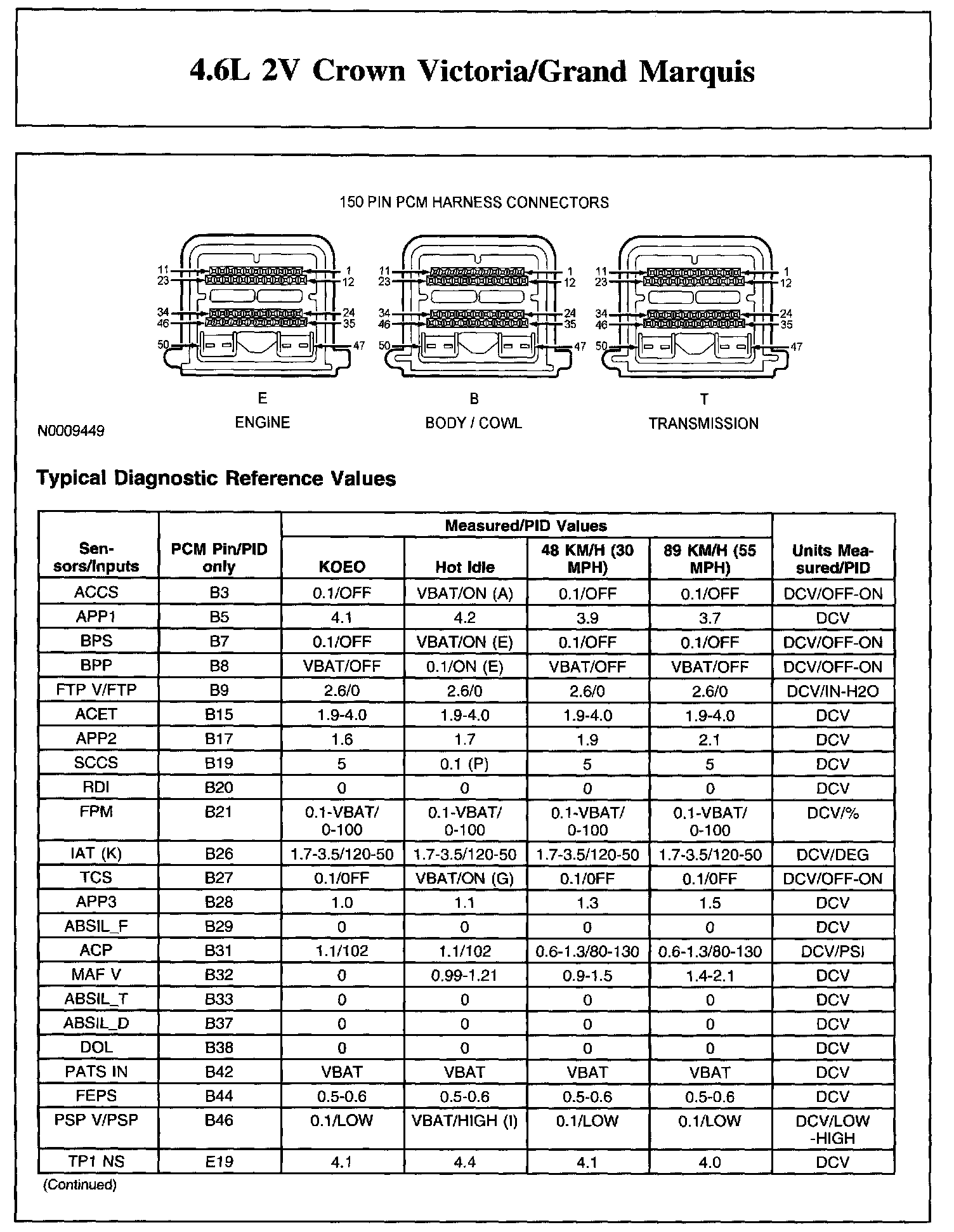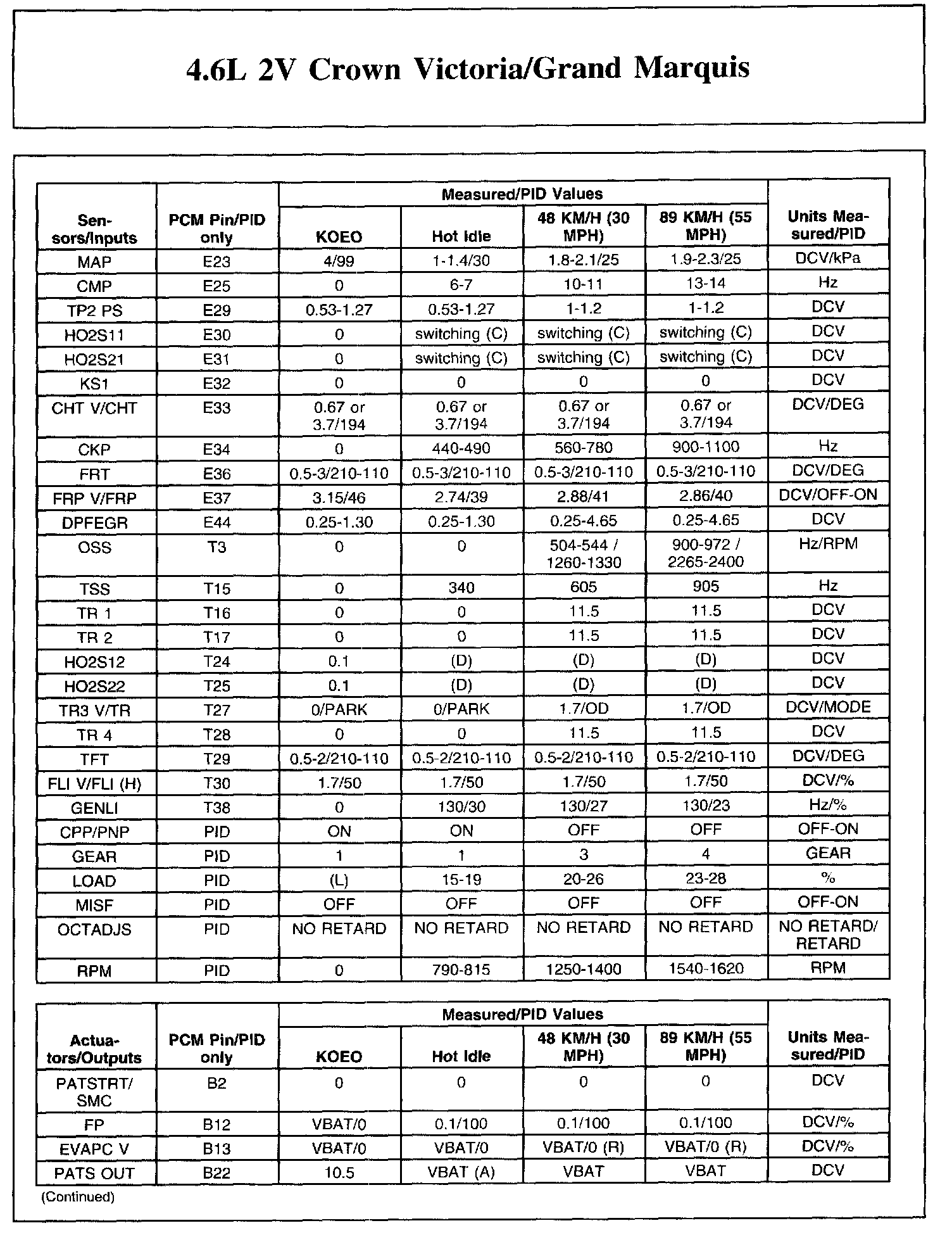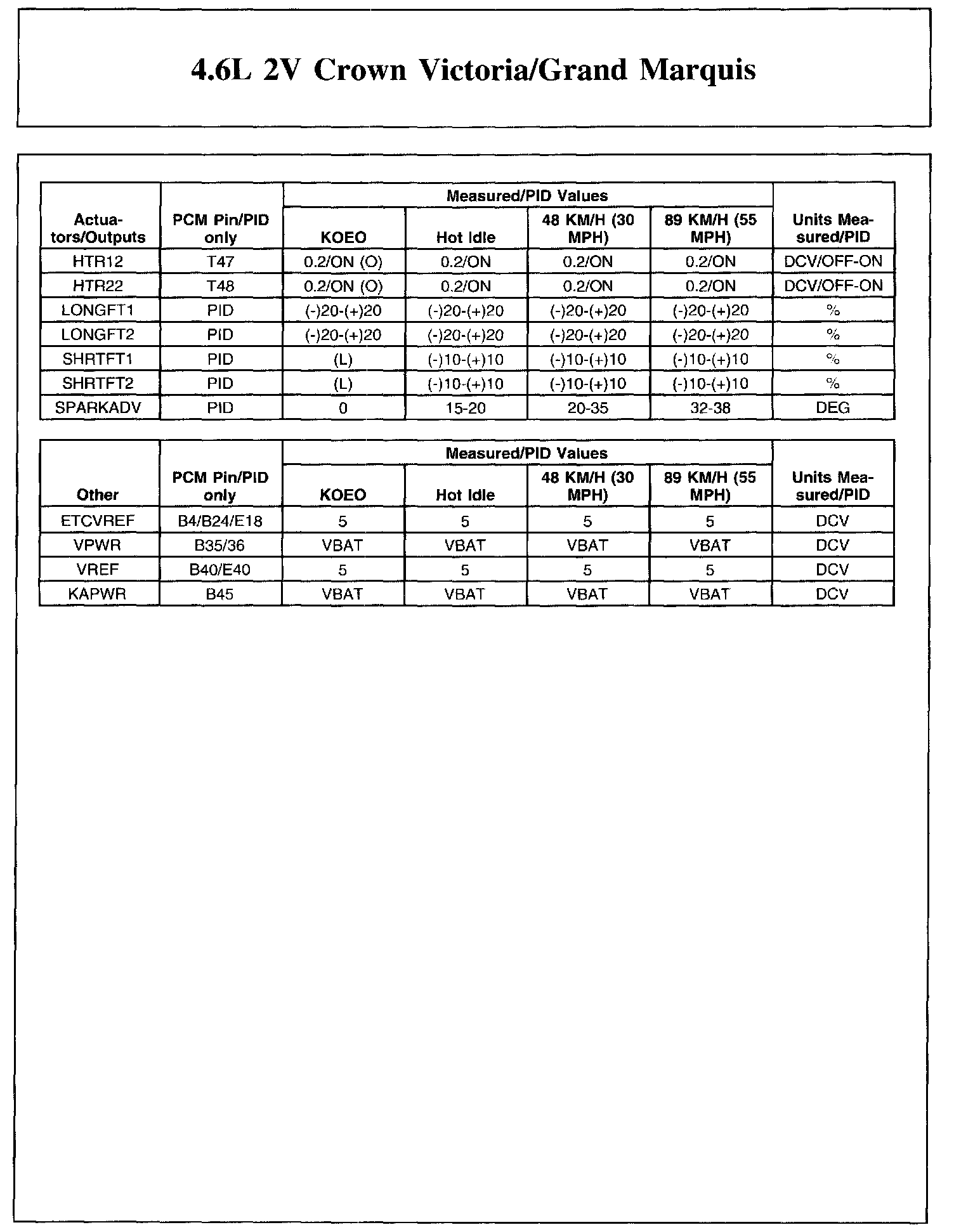 The Typical Diagnostic Reference Value Charts do not display fault parameter identifications (PIDs). These are PIDs which indicate a hard fault with the circuit. They display a value of YES or NO and are PIDs ending with the letter F.