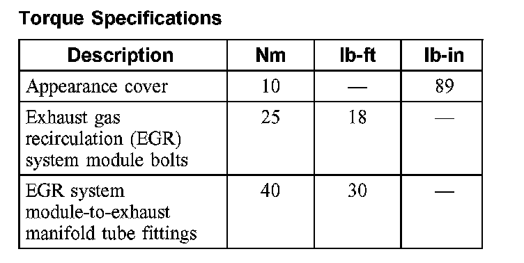 Torque Specifications: