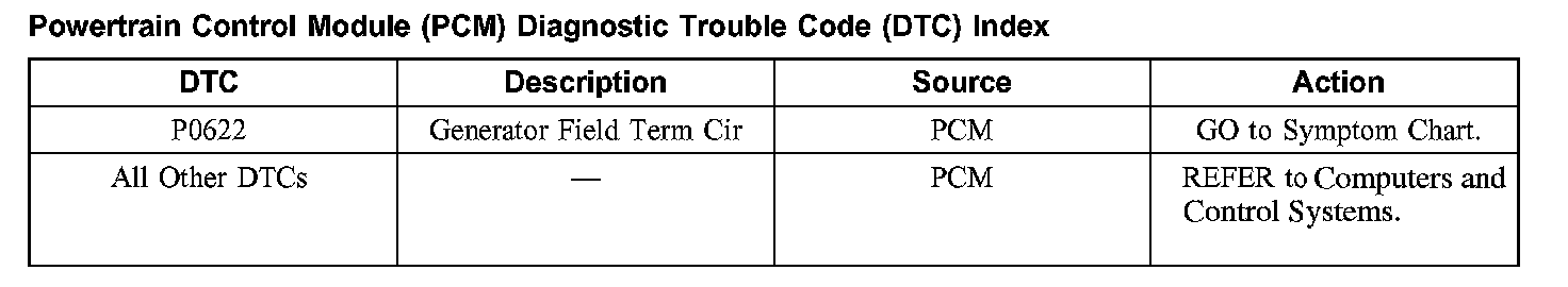 Powertrain Control Module (PCM) Diagnostic Trouble Code (DTC) Index