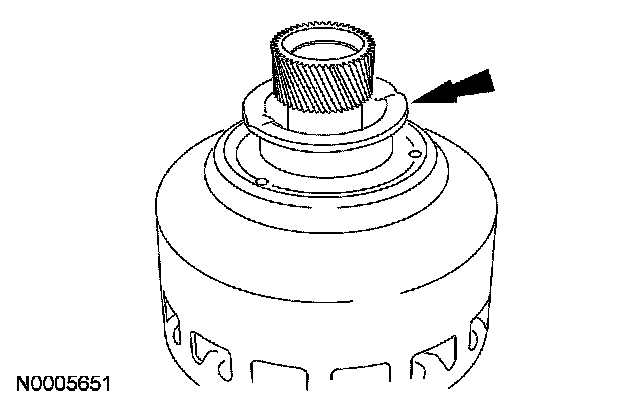 1. Clean and inspect the forward/reverse sun gear and input shell assembly. Check the sun gear teeth, lug teeth and thrust surface for damage. If any evidence of damage is found, a new input shell assembly must be installed.