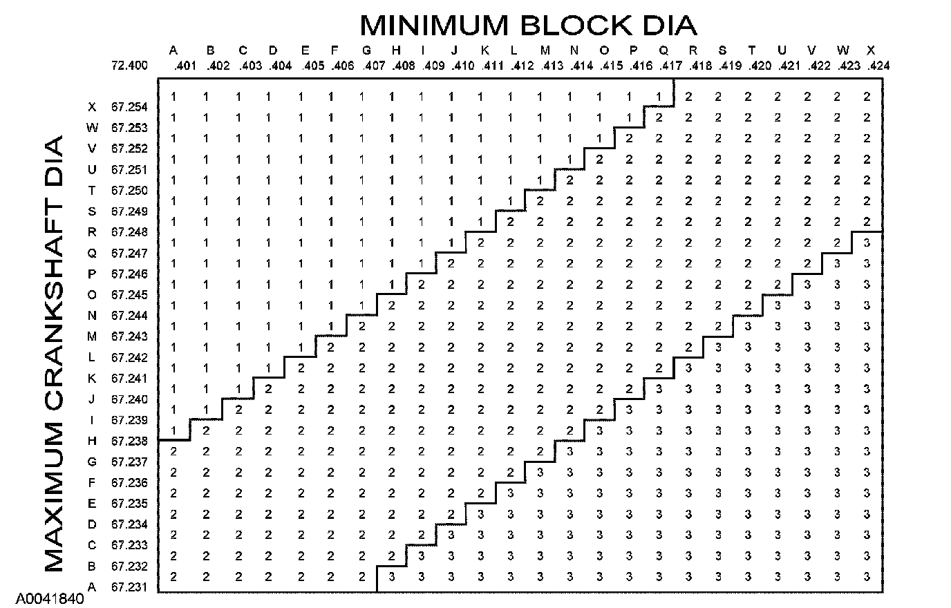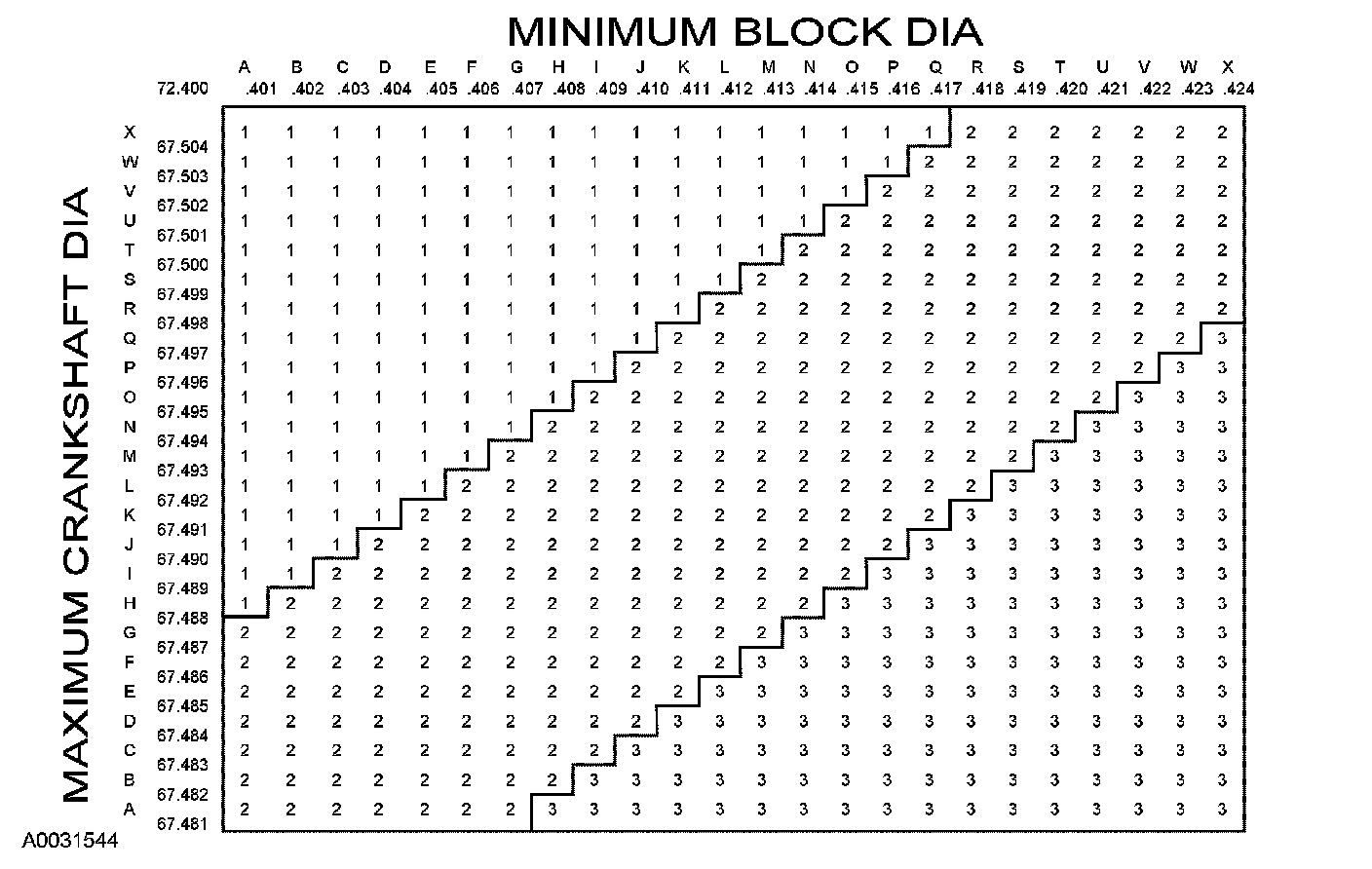 Main bearing bore inside diameter 72.401 - 72.422 mm (2.850 - 2.851 inch)