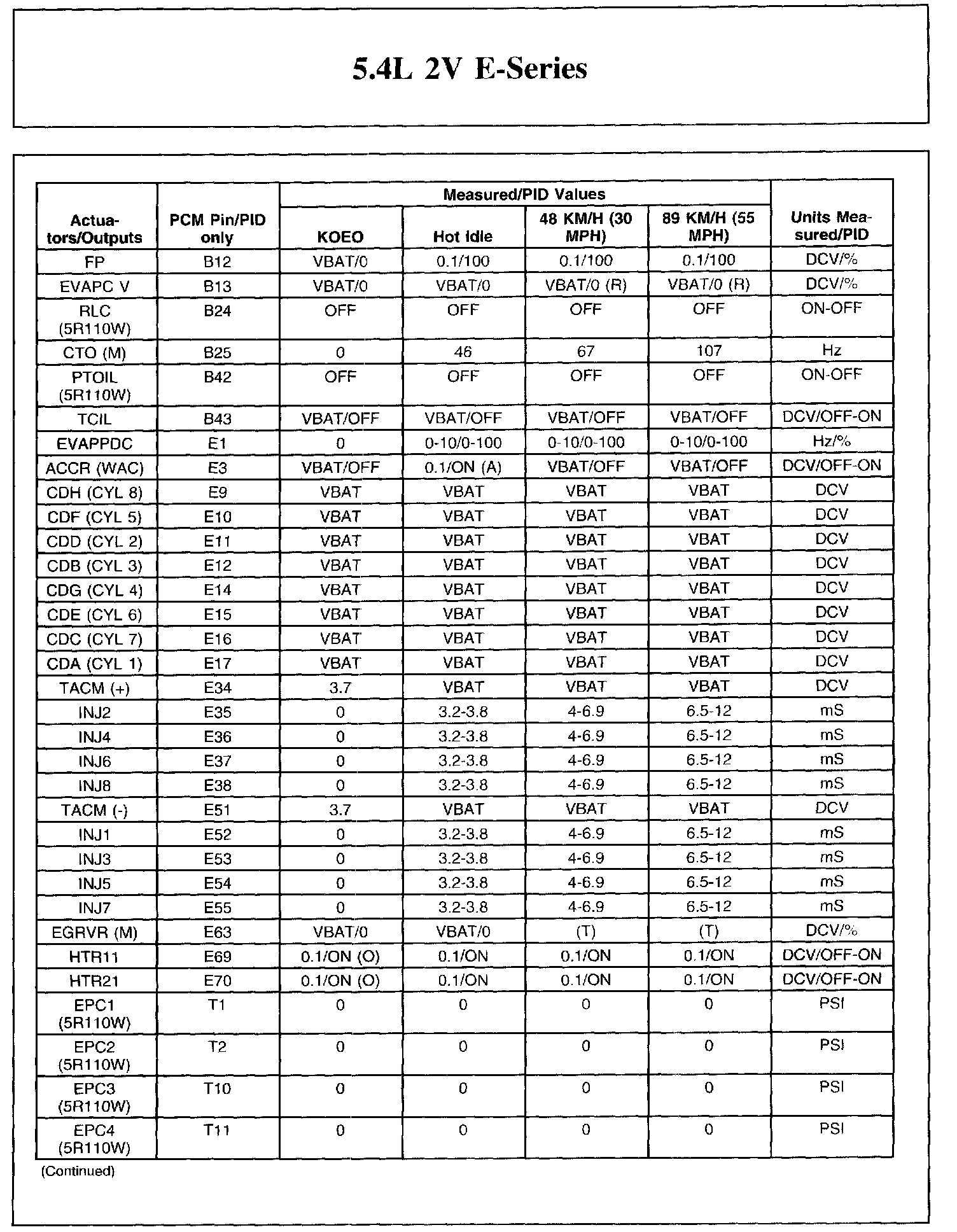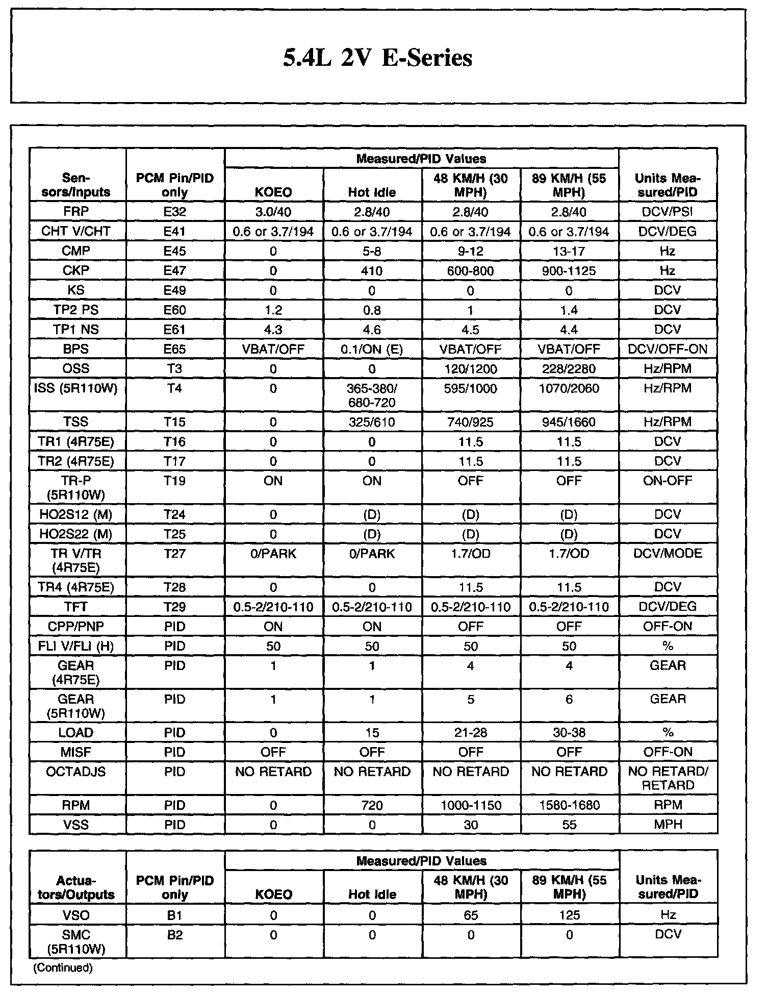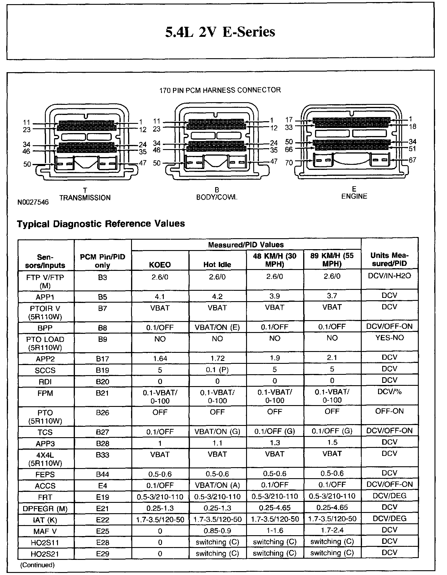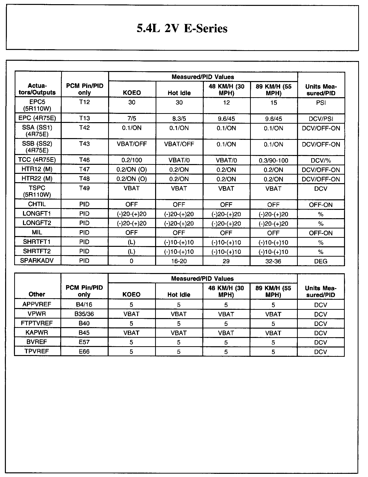 The Typical Diagnostic Reference Value Charts do not display fault parameter identifications (PIDs). These are PIDs which indicate a hard fault with the circuit. They display a value of YES or NO and are PIDs ending with the letter F.