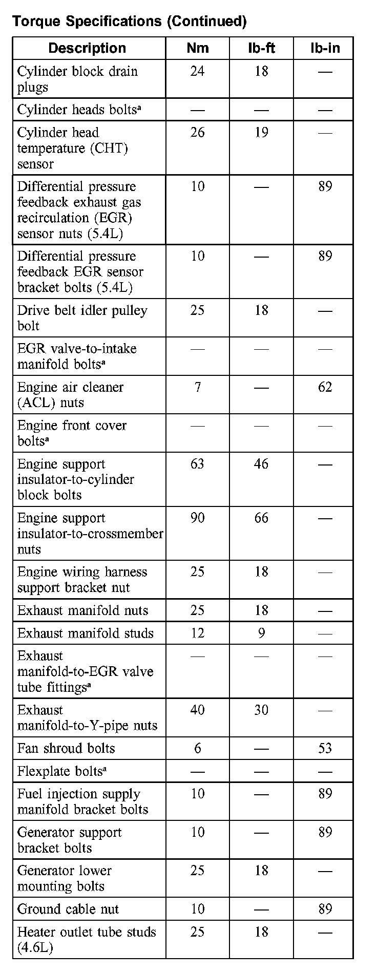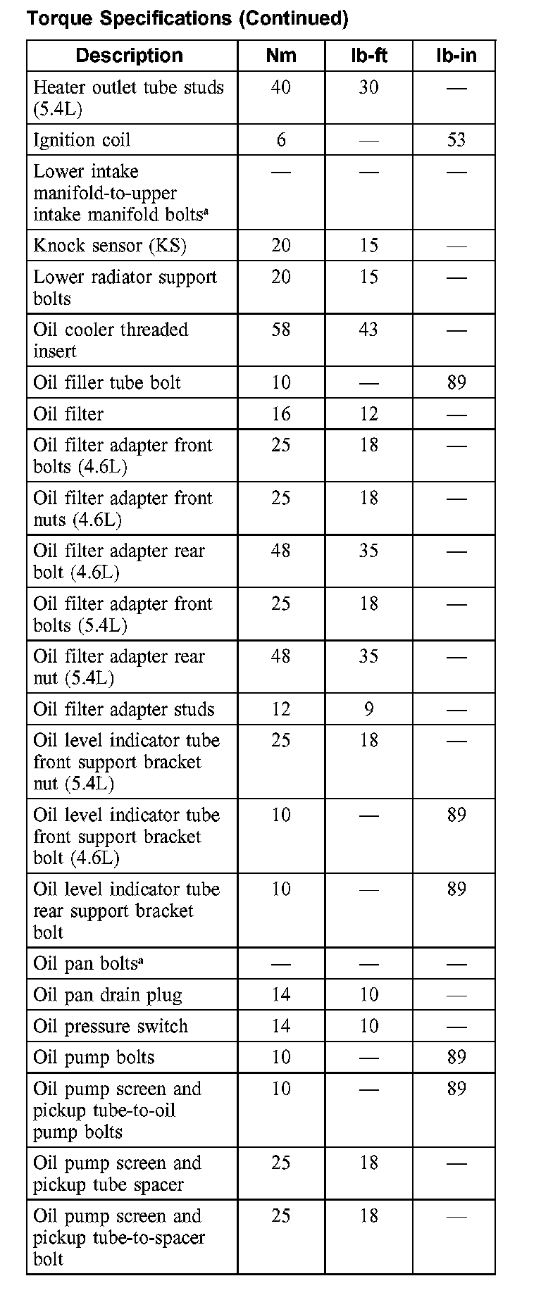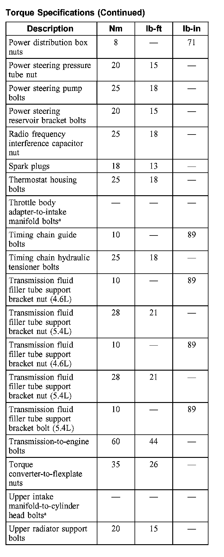 Torque Specifications