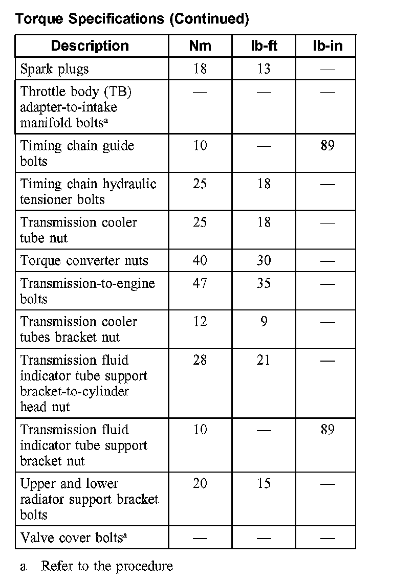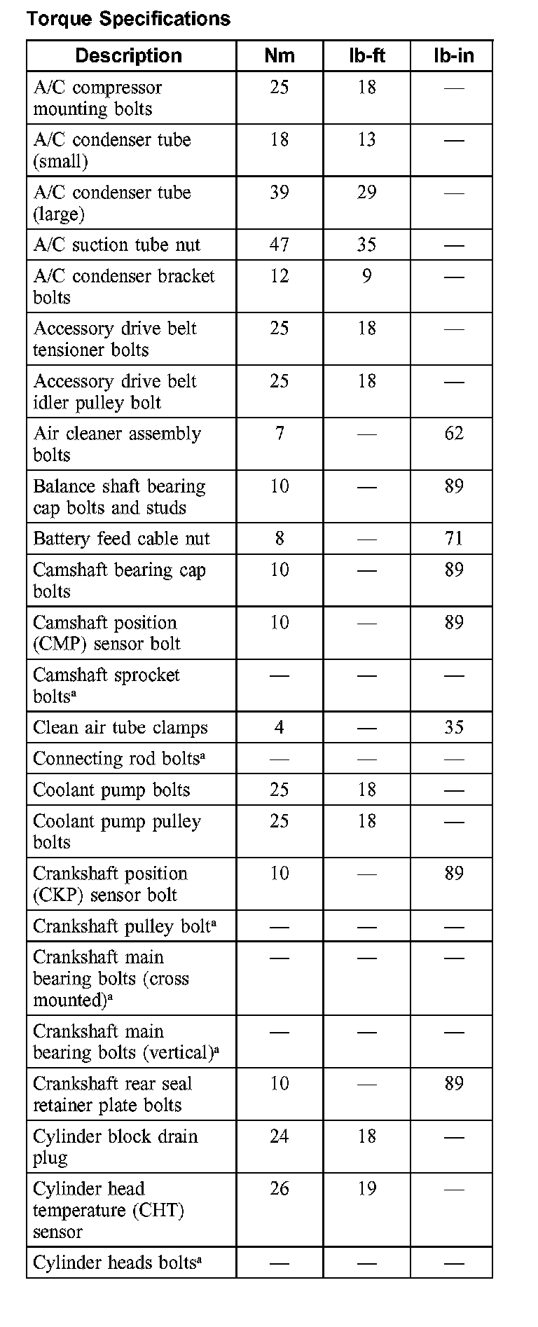 Torque Specifications