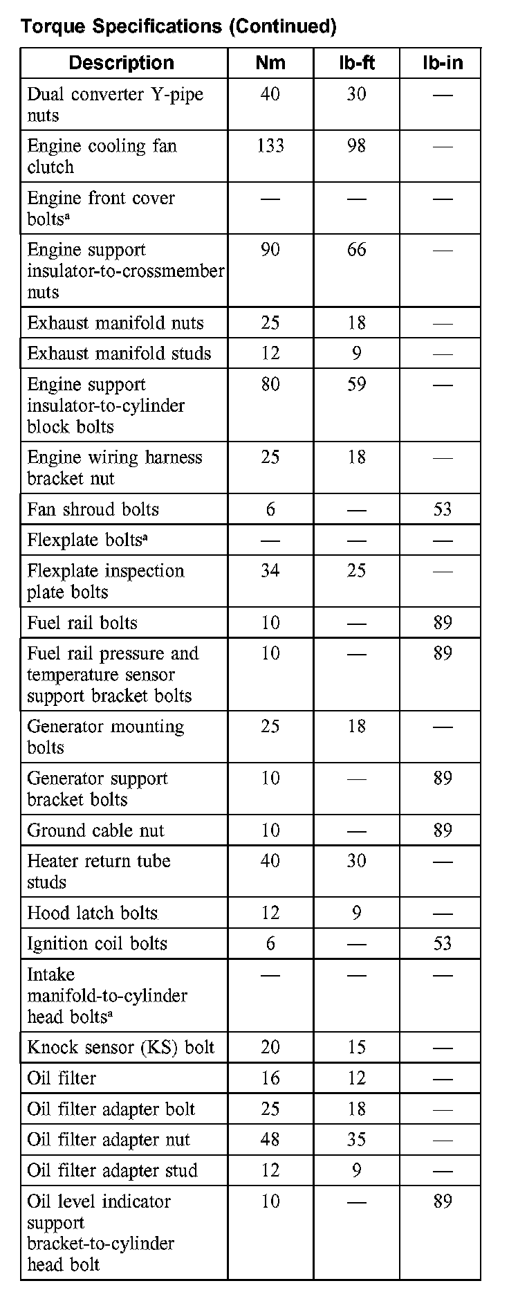 Torque Specifications: