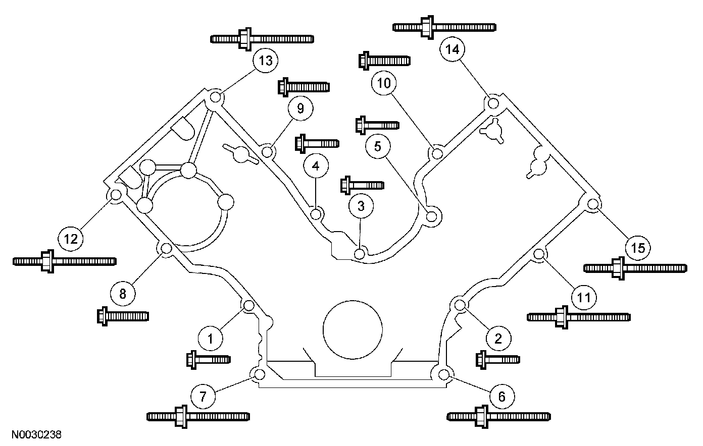 First pass: fasteners 1-5 25 Nm (18 ft. lbs.)