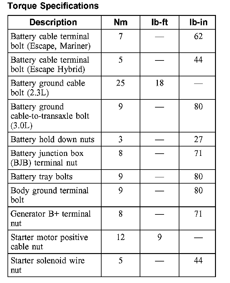 Torque Specifications:
