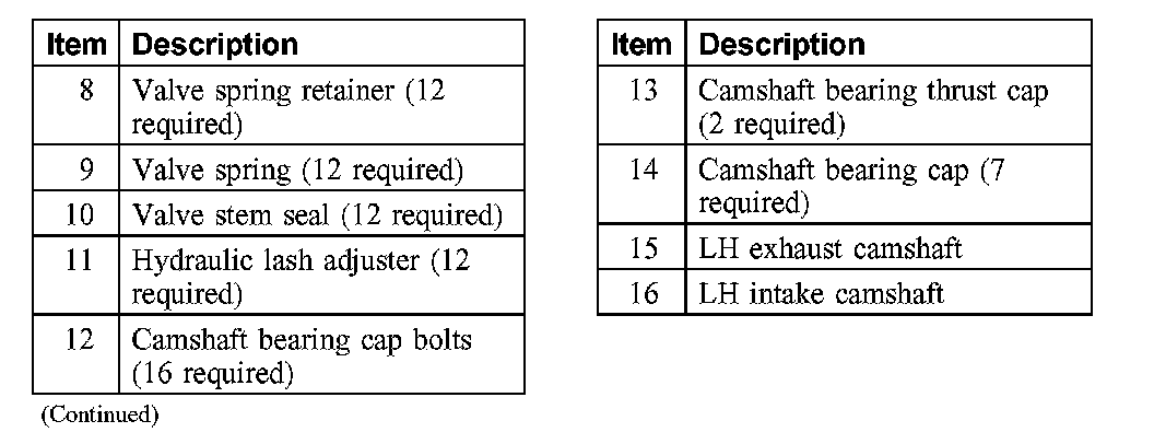 Valve Train Components - Exploded View Valve Train Components - LH Early Build: