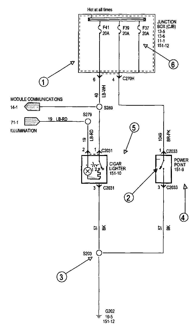Each set normally starts with the component that powers the circuit, such as a fuse or the ignition switch. Current flow is shown from the power source at the top of the diagram to ground at the bottom of the diagram. A full representation of the power supply of a fuse or the power distribution from a fuse to various components is given in the Power and Ground Distribution Diagrams. Full representation of the ground connections are shown in the Power and Ground Distribution Diagrams.