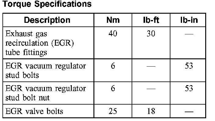 Torque Specifications:
