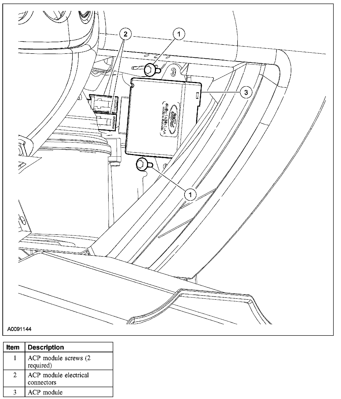 4. Disconnect the electrical connectors and remove the ACP module.
