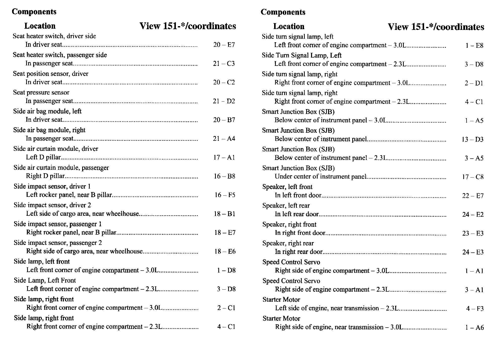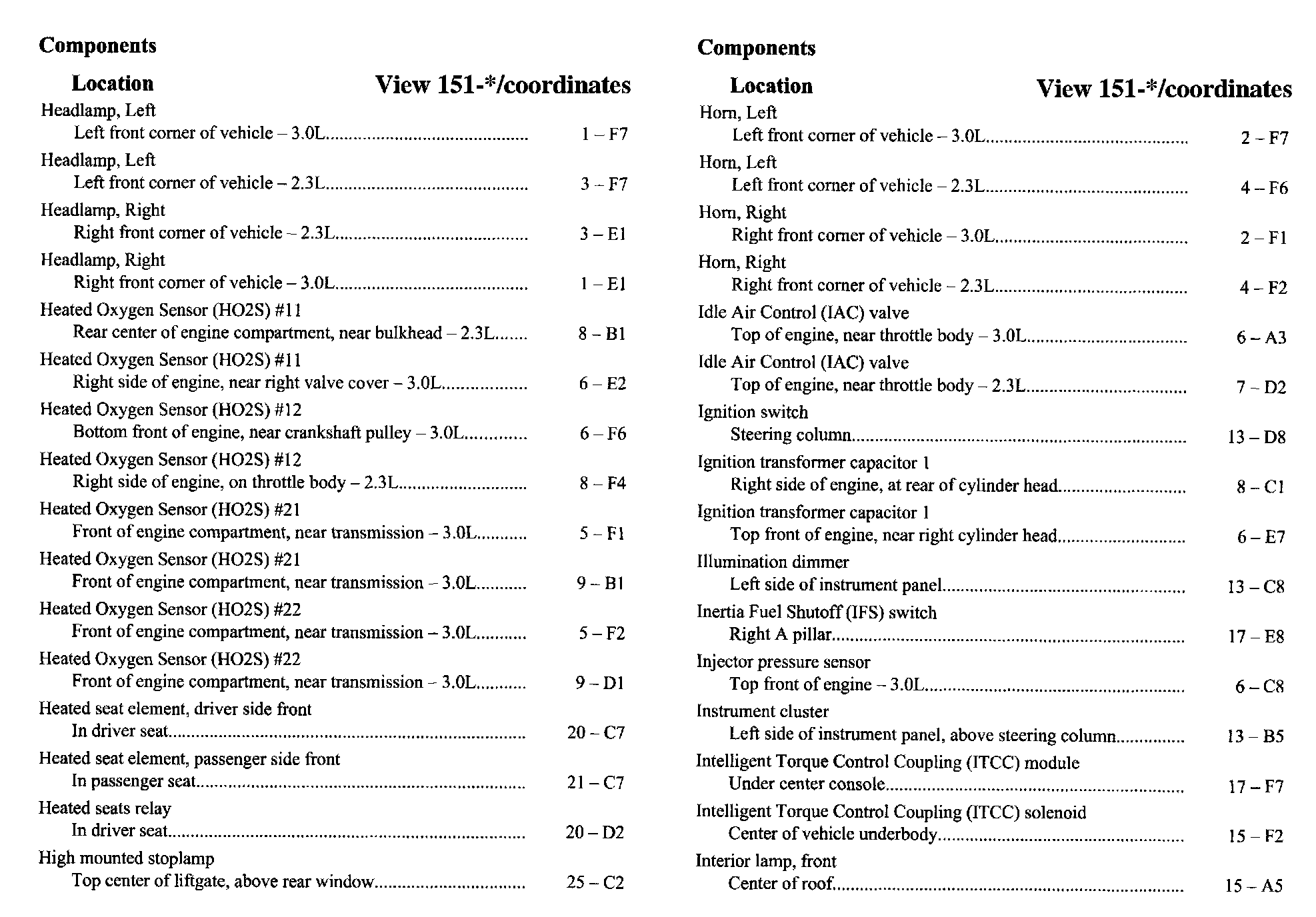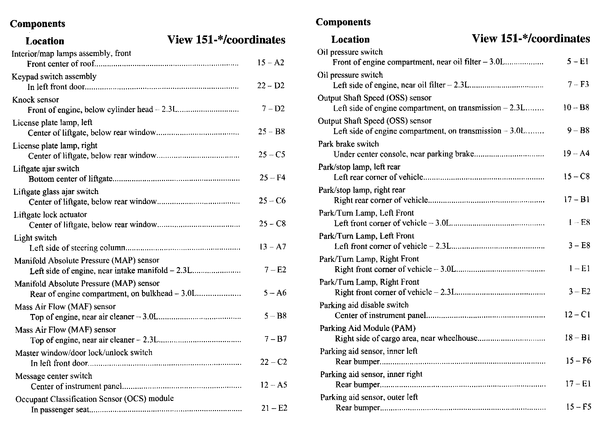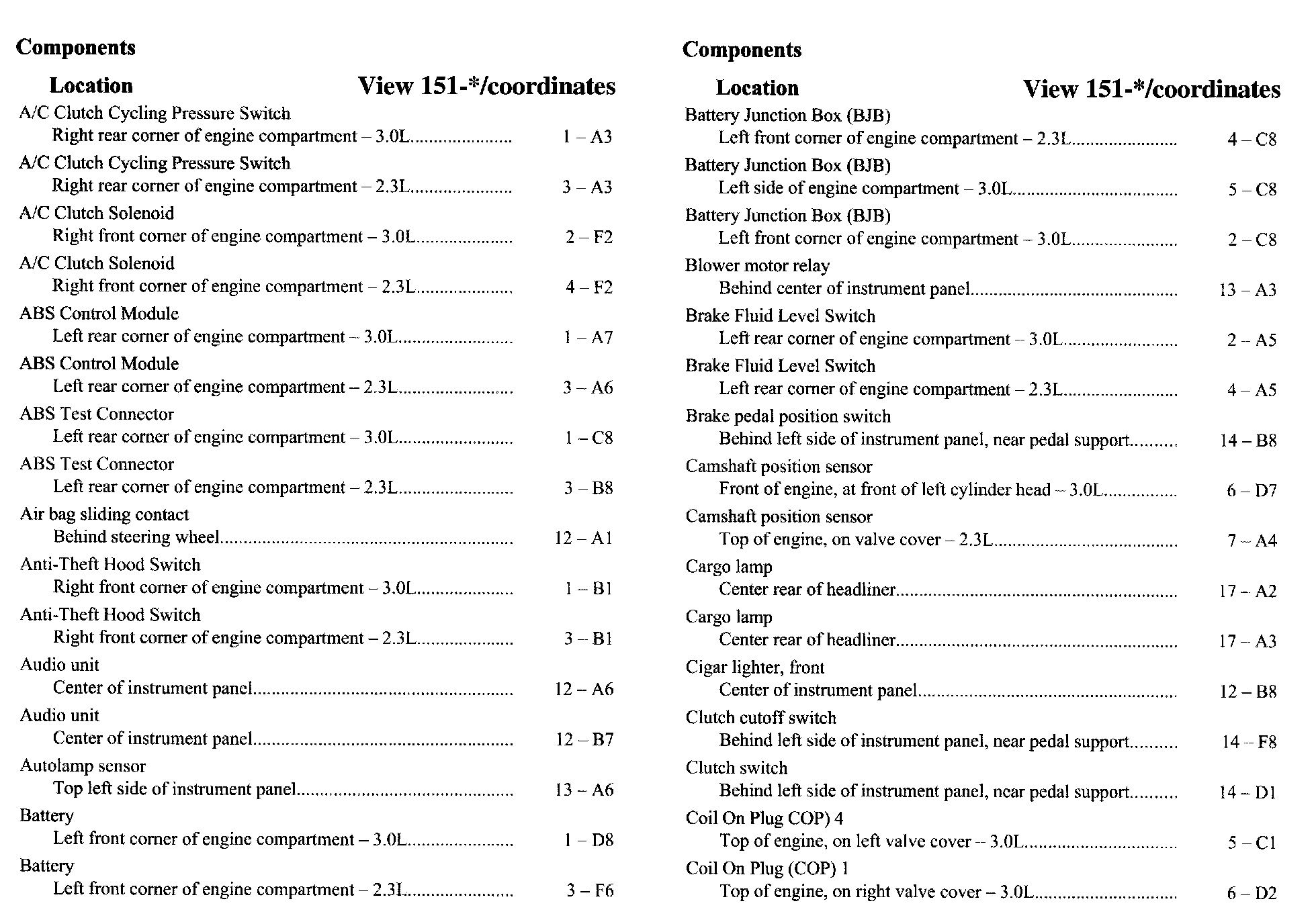 Home >> Ford >> 2006 >> Escape 4WD L4-2.3L VIN Z >> Repair and Diagnosis >> Diagrams >> Components >> Component Location Index