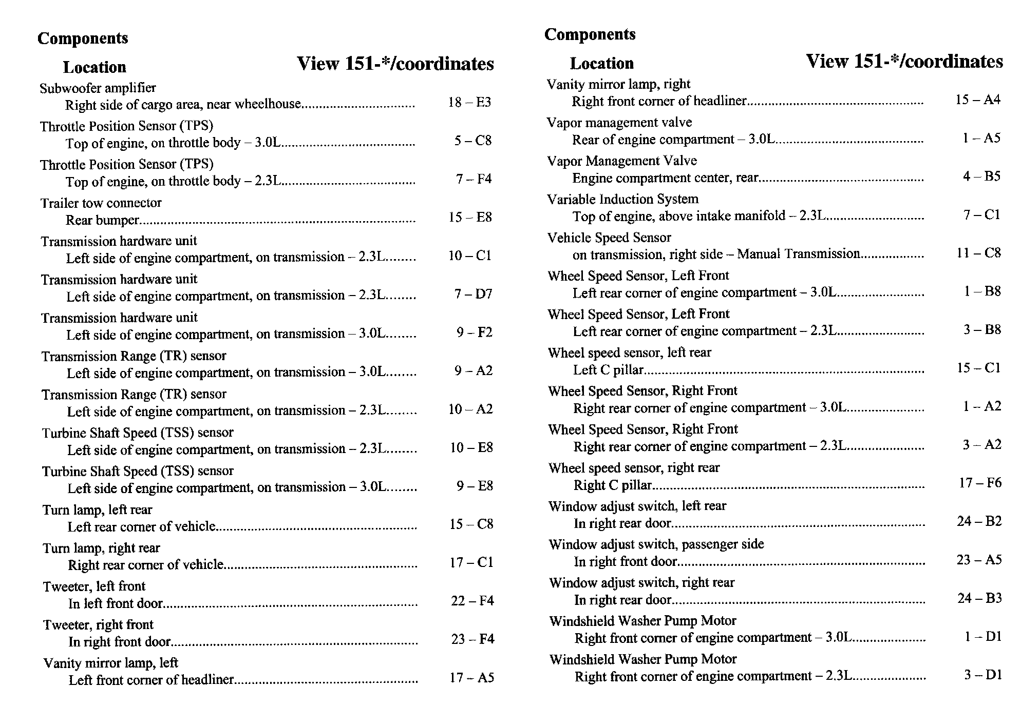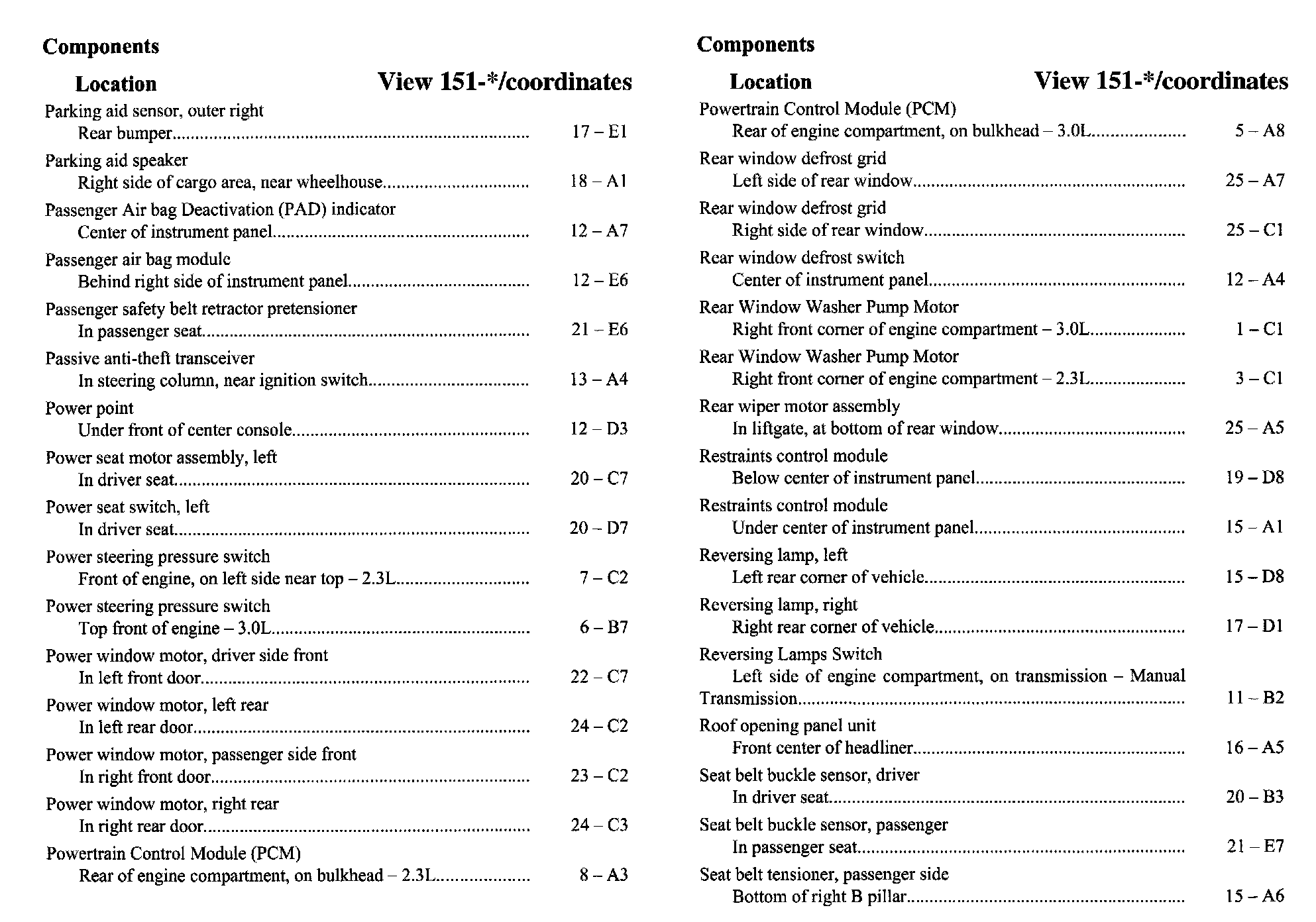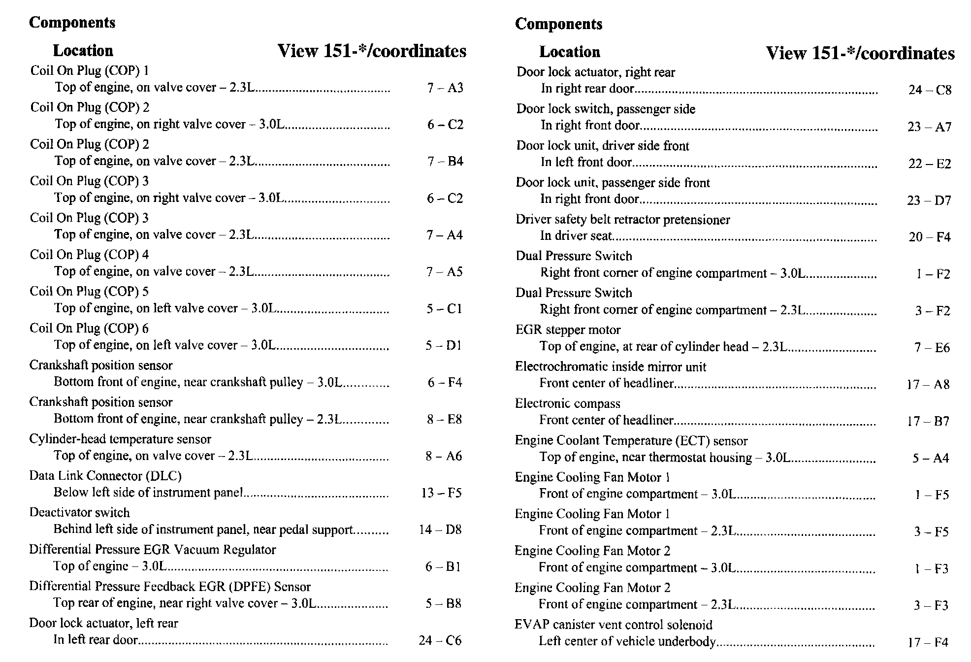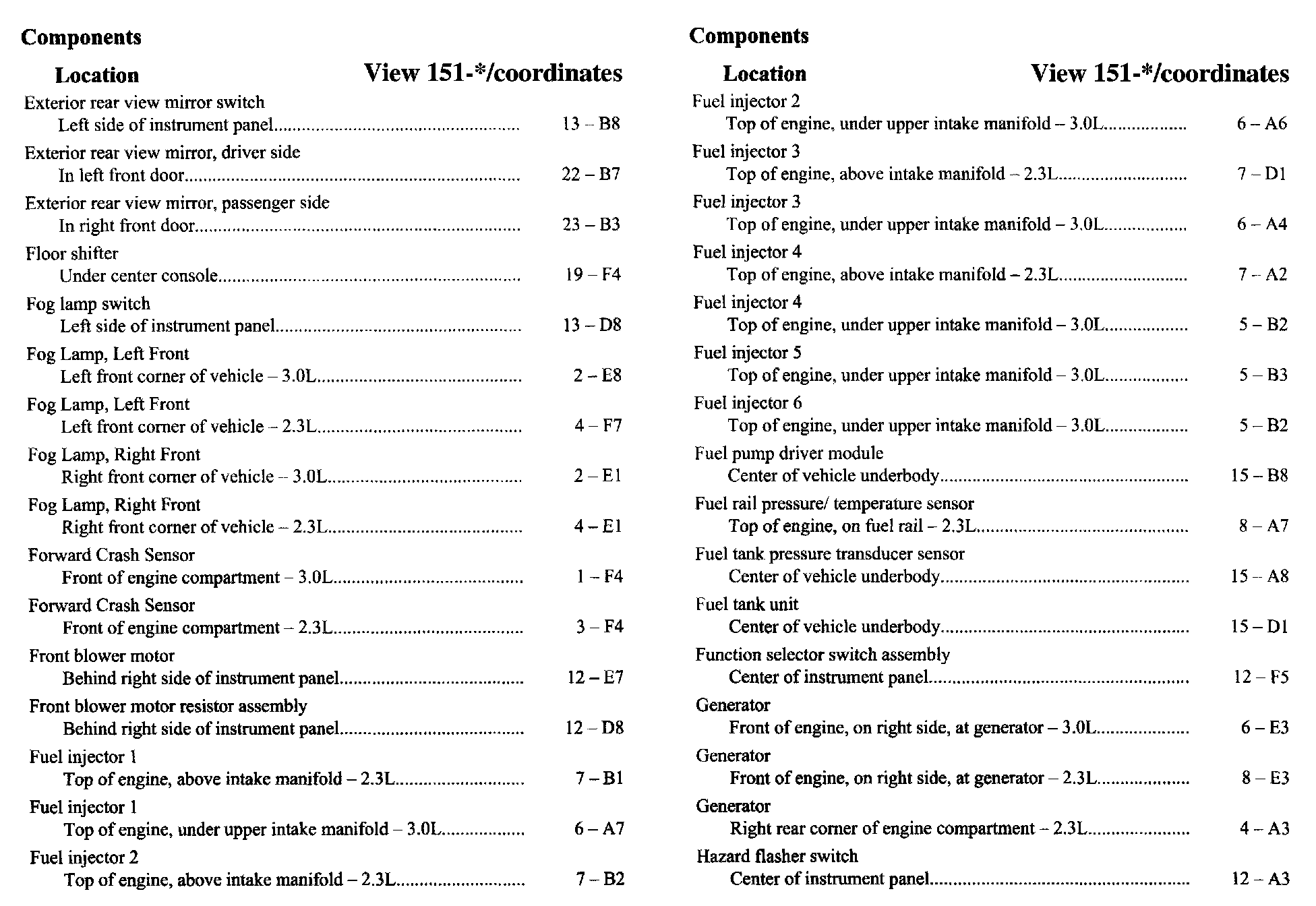 Home >> Ford >> 2006 >> Escape 4WD L4-2.3L VIN Z >> Repair and Diagnosis >> Diagrams >> Components >> Component Location Index