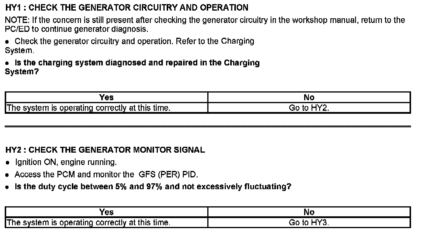 PINPOINT TEST HY: GENERATOR/REGULATOR SYSTEM