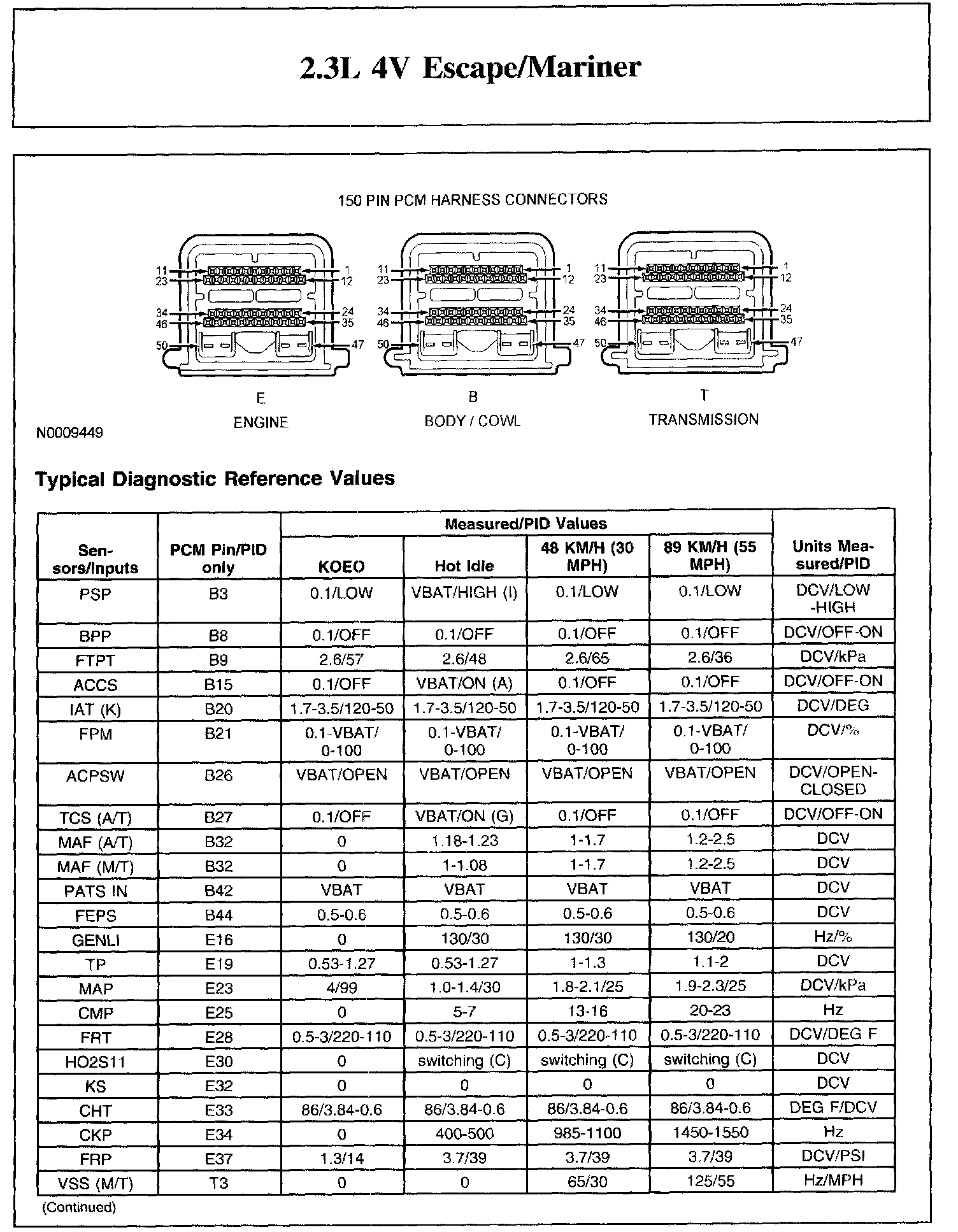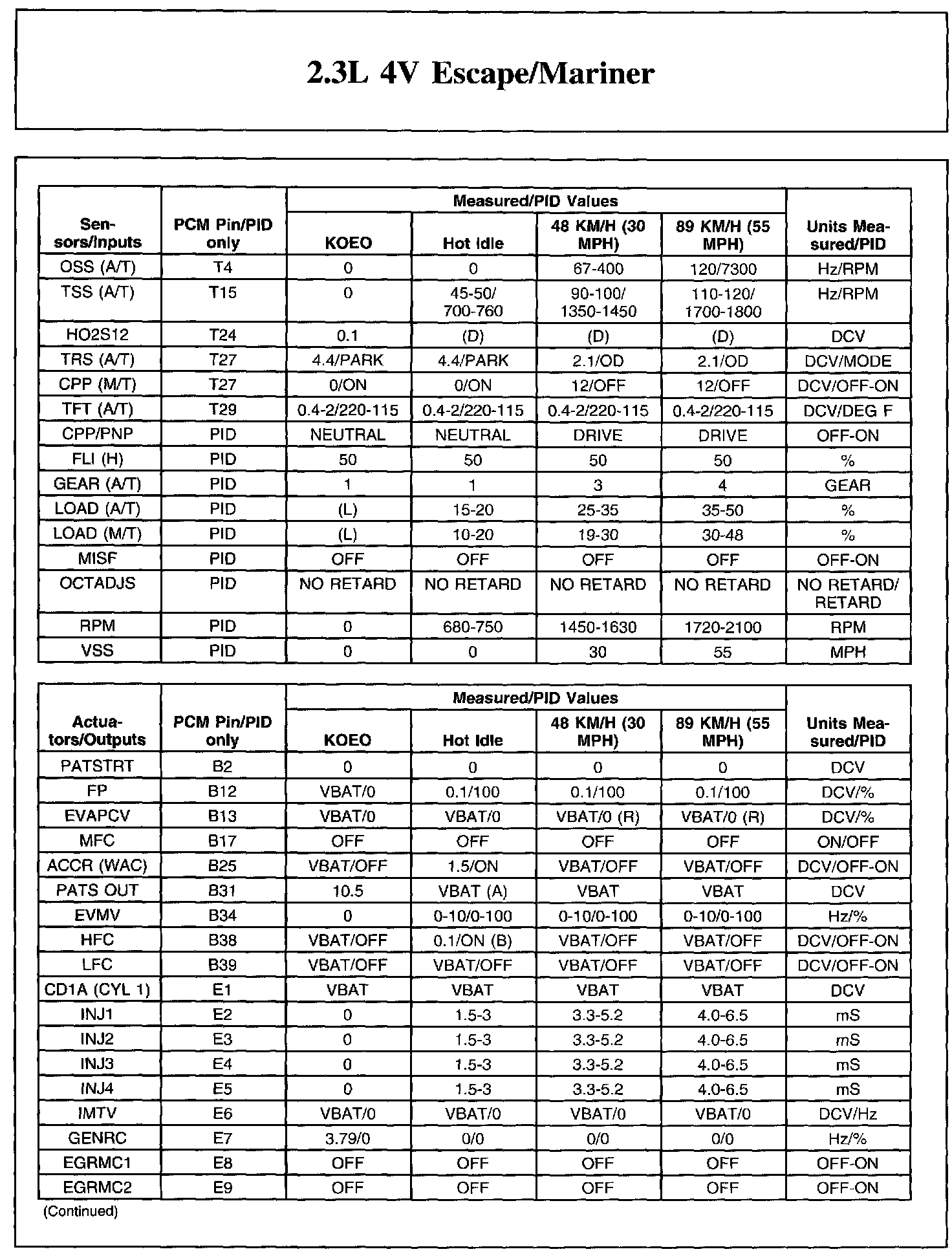 The Typical Diagnostic Reference Value Charts do not display fault parameter identifications (PIDs). These are PIDs which indicate a hard fault with the circuit. They display a value of YES or NO and are PIDs ending with the letter F.