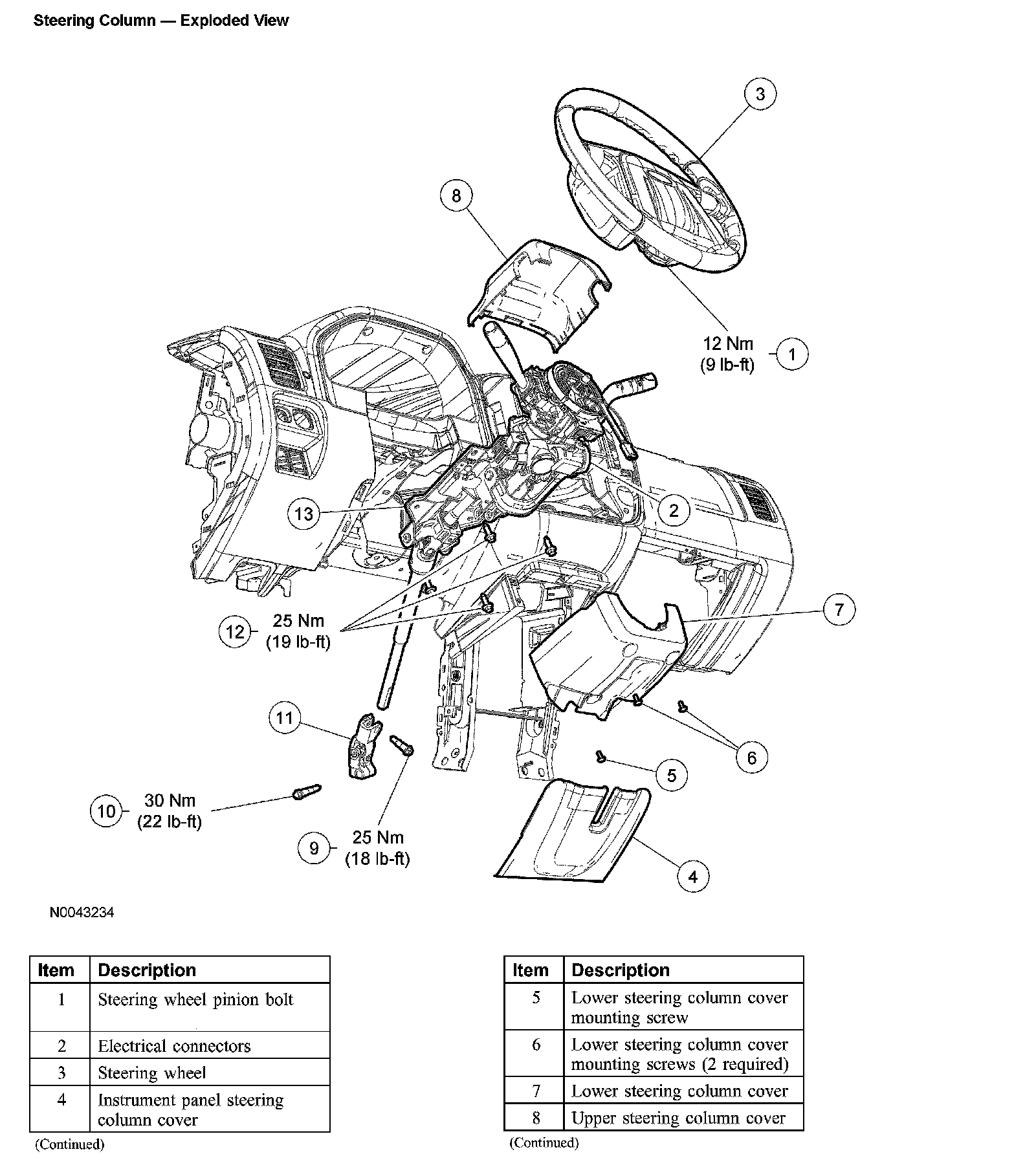 Steering Column - Exploded View (Part 1):