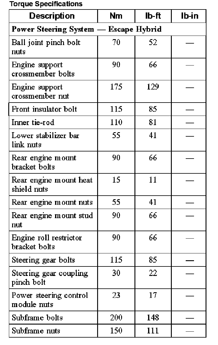 Torque Specifications (Part 1):