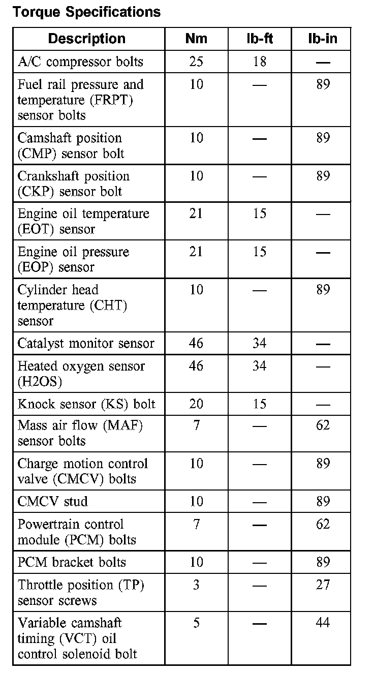 Torque Specifications: