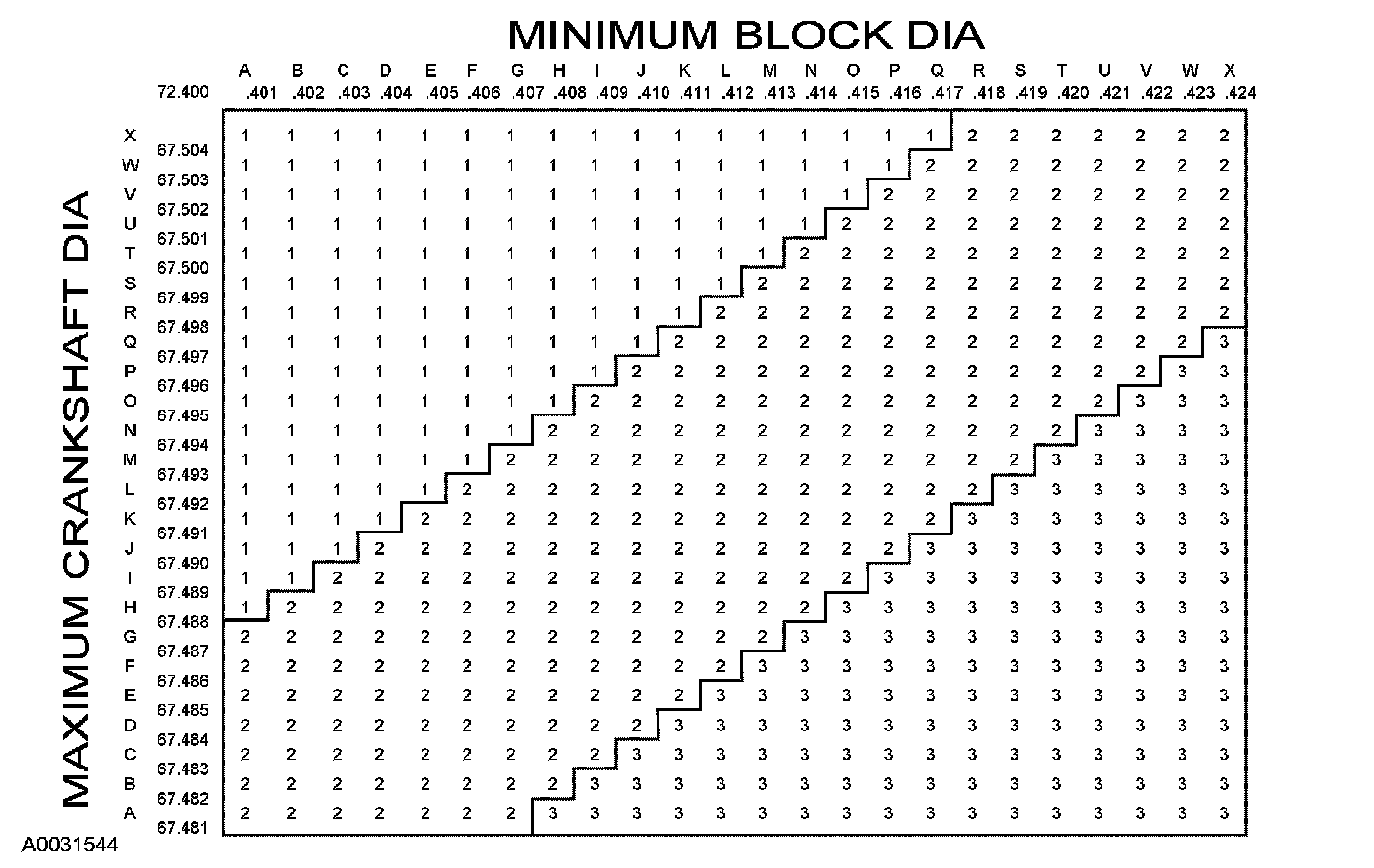 Main bearing size chart