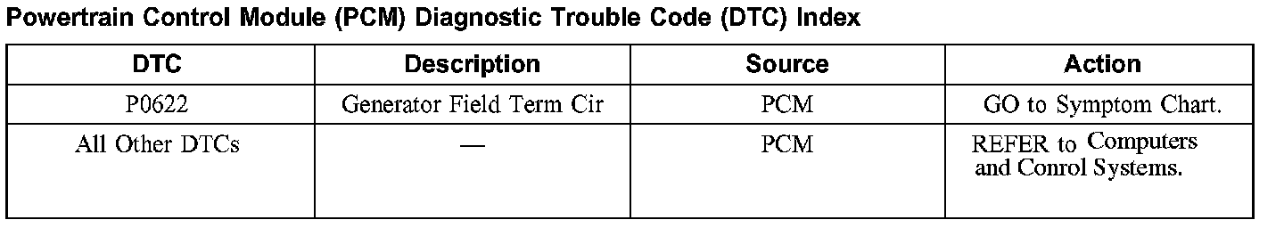 Powertrain Control Module (PCM) Diagnostic Trouble Code (DTC) Index