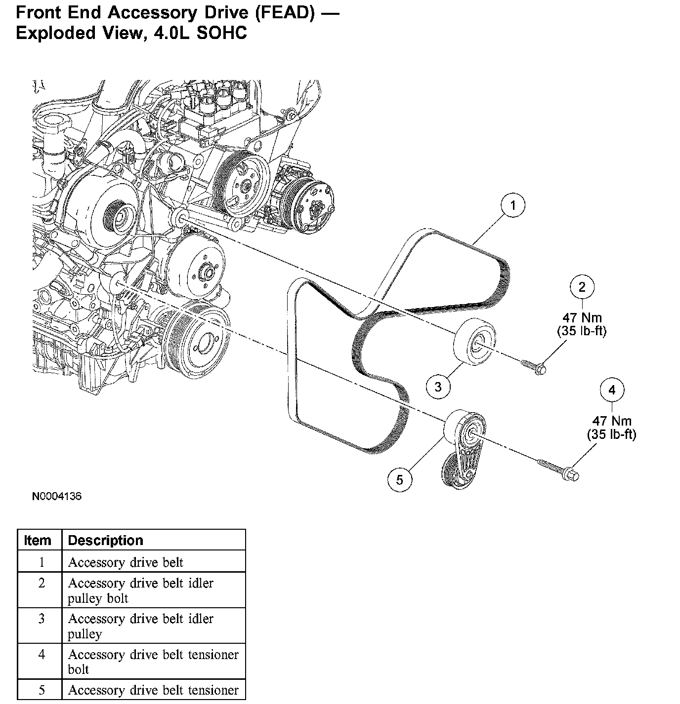 Front End Accessory Drive (FEAD) Exploded View, 4.0L SOHC: